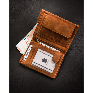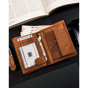 Ši vyriška odinė piniginė su šuns galvos įspaudu yra puikus pasirinkimas tiems, kurie vertina kokybę ir stilių. Pagaminta iš natūralios odos ir zamsos/nubuko, ši ruda piniginė pasižymi elegantišku miesto ir kasdieniu stiliumi.