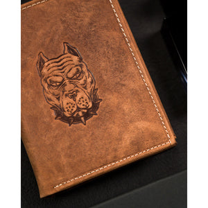 Vyriška odinė piniginė su šuns galvos įspaudu