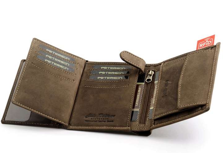Pristatome odinę vyrišką piniginę Peterson, kuri sujungia eleganciją ir funkcionalumą. Kiekviena piniginė pateikiama su stilinga metaline dėžute, puikiai tinkančia dovanai ar saugojimui.