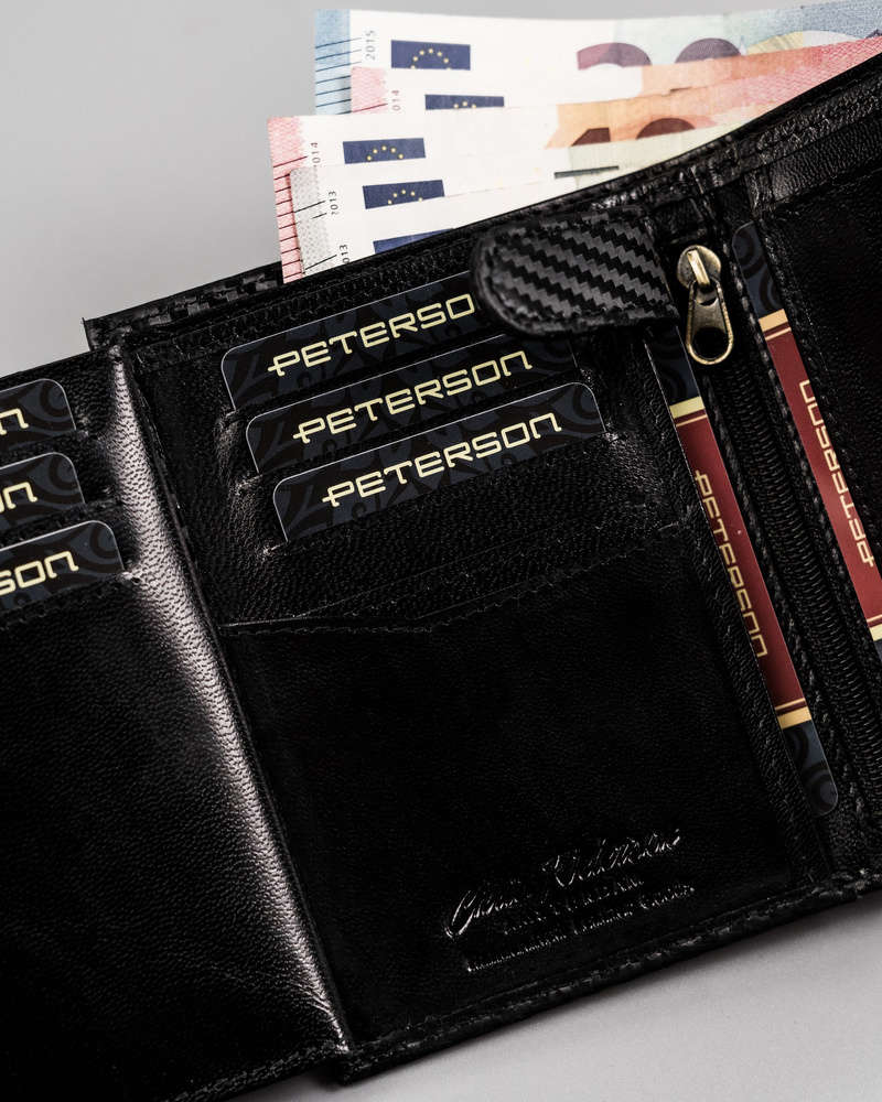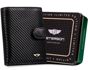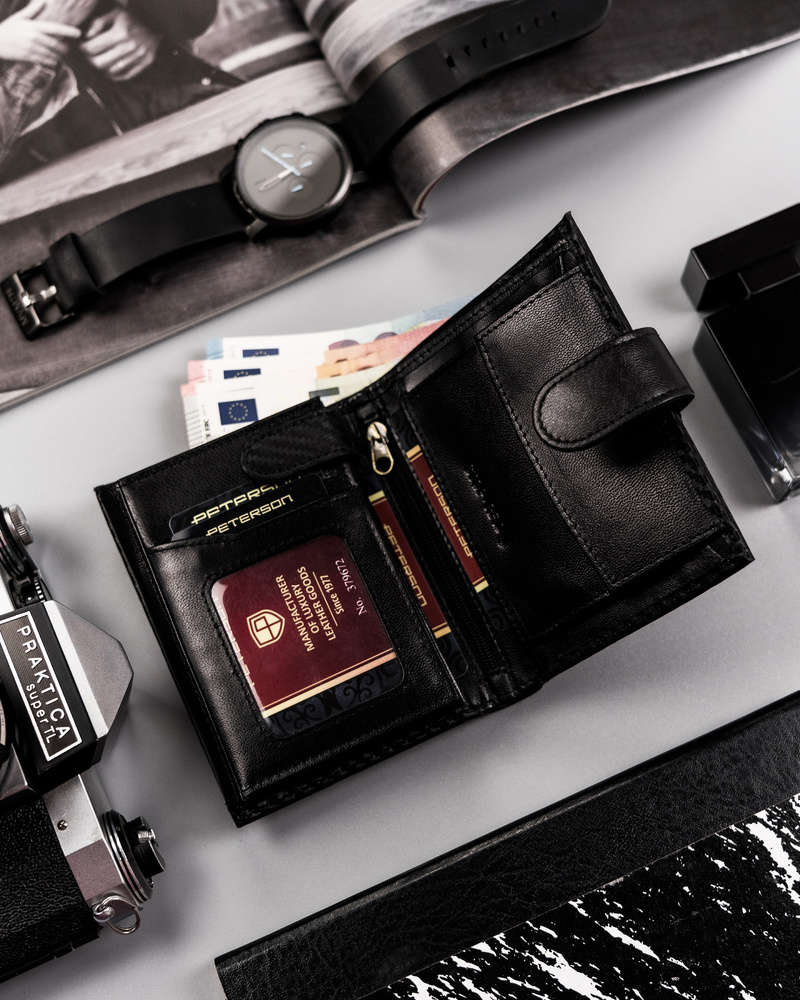 Ši klasikinė vyriška odinė piniginė su užsegimu, pagaminta Peterson, yra puikus pasirinkimas tiems, kurie vertina funkcionalumą ir stilių.