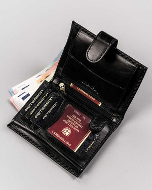 - 1 užsegamas skyrius centrinėje piniginės dalyje.