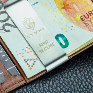 Vyriška odinė piniginė STEVENS® SLIM su RFID apsauga, klipsu ir monetų skyriumi