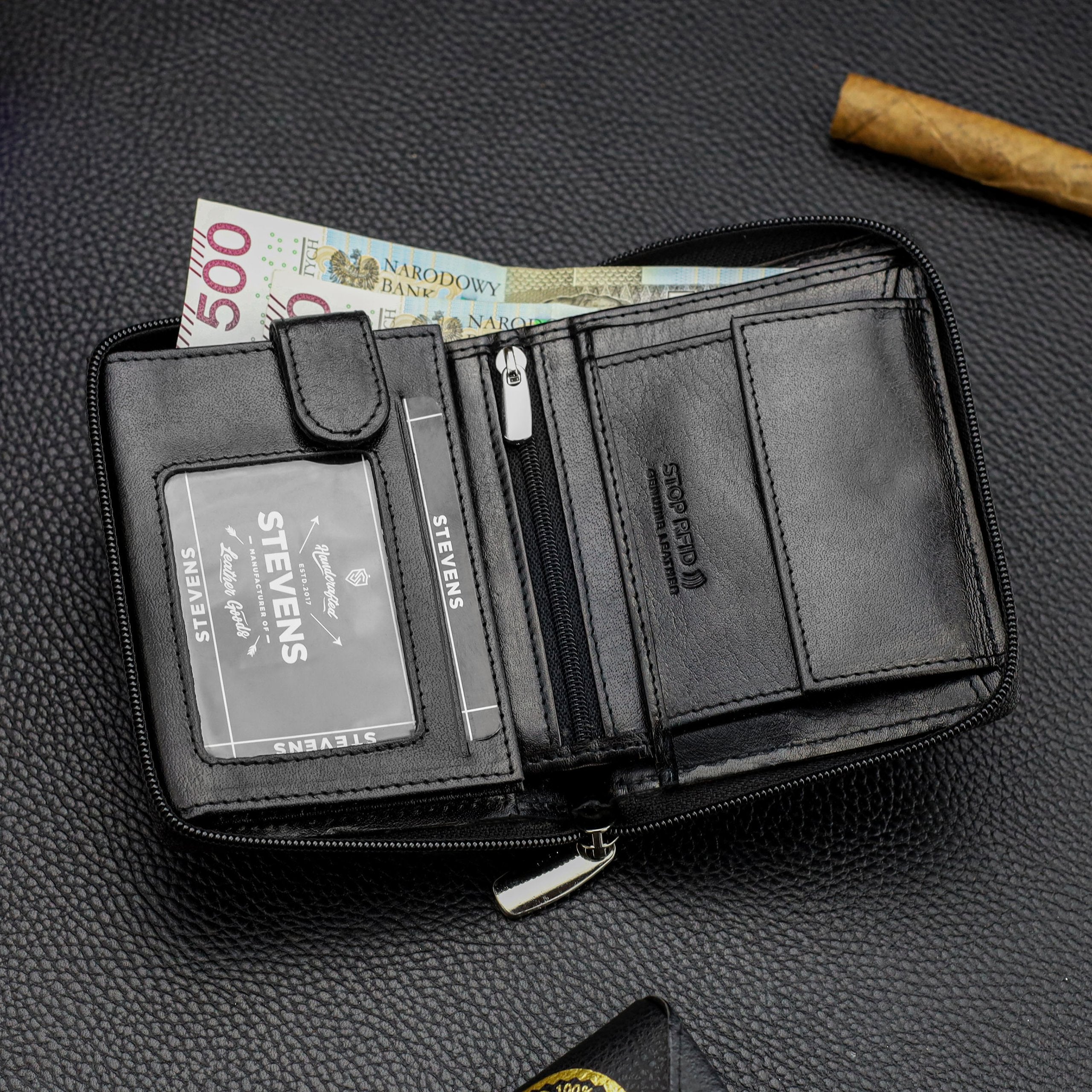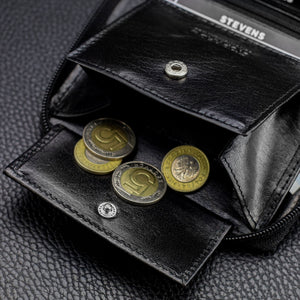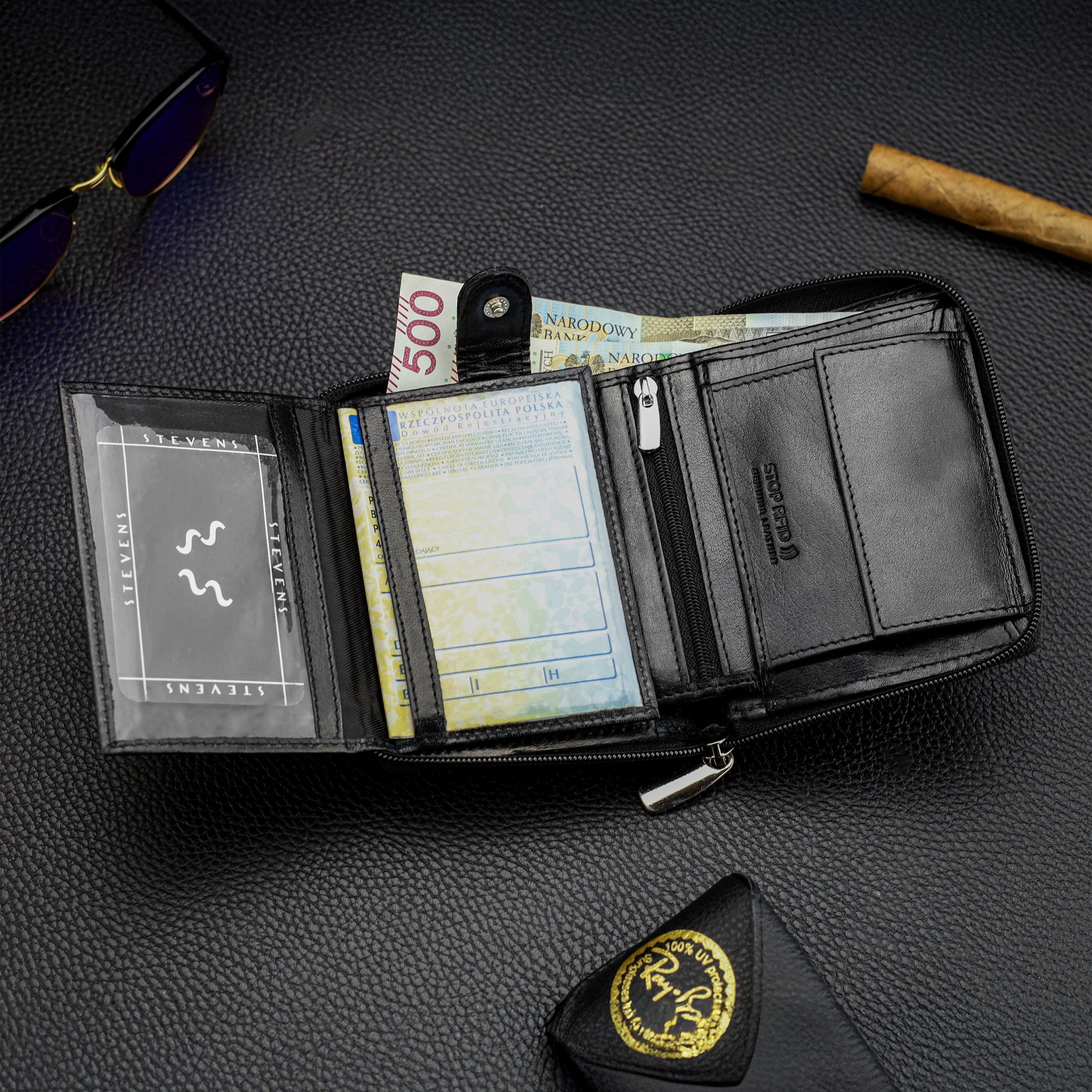 STEVENS® vyriška odinė piniginė su RFID apsauga – tai stilingas, patvarus ir saugus pasirinkimas šiuolaikiniam vyrui.