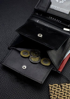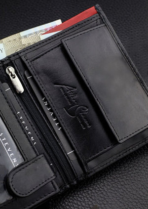 Vyriška piniginė STEVENS PREMIUM, natūrali oda, RFID, juoda, Q3