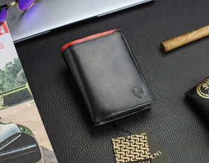 Vertikali vyriška piniginė, pagaminta iš natūralios veršiuko odos su subtiliu poliruotu paviršiumi. Kompaktiška, funkcionali ir patogi kasdieniam naudojimui.