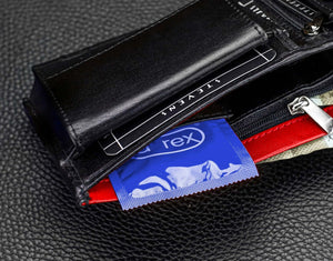 Piniginės viduje esančios kortelės yra apsaugotos nuo belaidžio nuskaitymo, kai piniginė uždaryta. Naudojant išorinę Tap&Go kišenėlę, kortelę galima nuskaityti neatidarant piniginės.