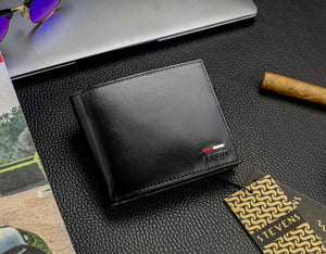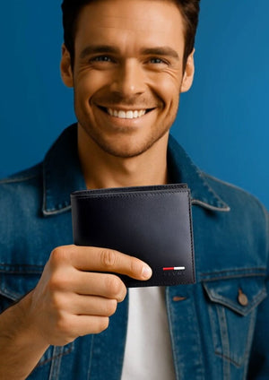 Elegantiška vyriška piniginė, pagaminta iš aukštos kokybės natūralios galvijų odos, su subtiliu poliruotu paviršiumi. Kompaktiško dydžio – 12,5 × 10,5 × 2,5 cm – patogi kasdieniam naudojimui ir talpinanti visus būtiniausius daiktus.
