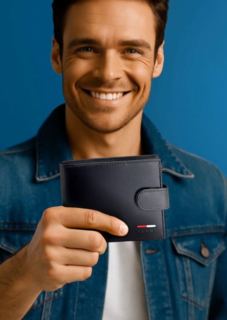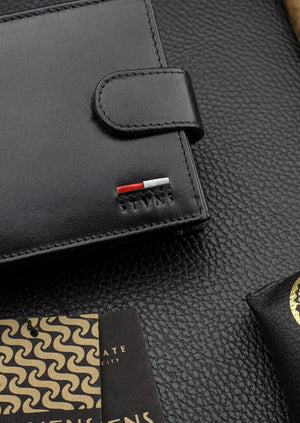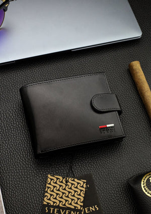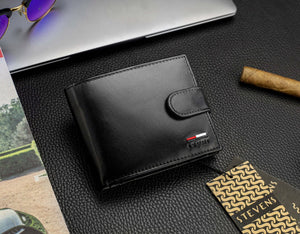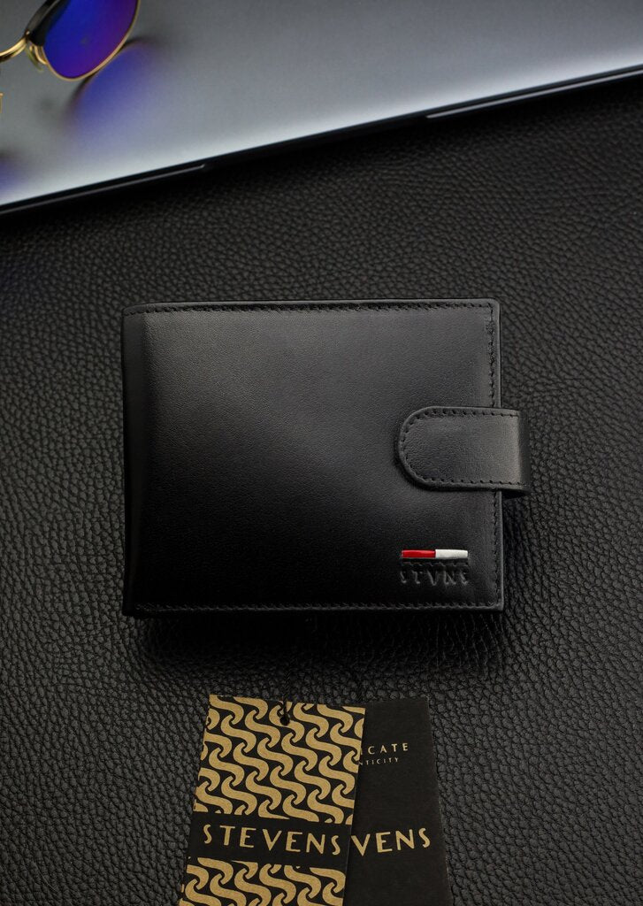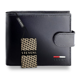 Vyriška piniginė STEVENS RFID, natūrali oda, horizontali, premium, juoda, Q3
