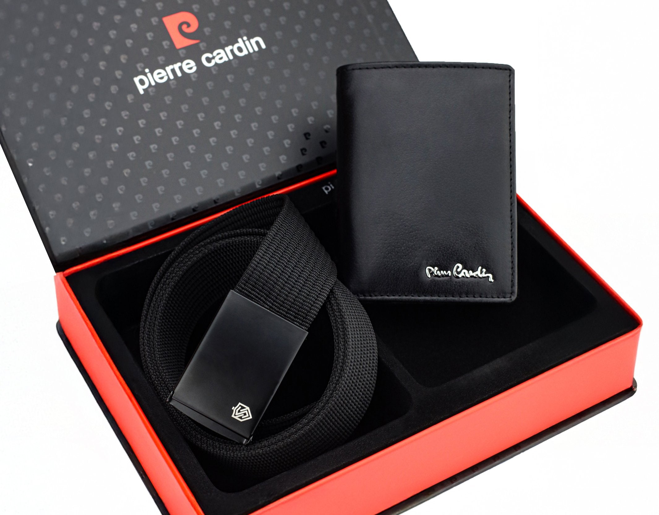 PIERRE CARDIN • Vyriškas dovanų rinkinys Q1 • Oda • RFID • Piniginė (VERTIKALI) + diržas 135 cm