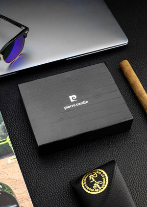 PIERRE CARDIN • Vyriška odinė piniginė RFID (VERTIKALI) • Dovanų dėžutė ir maišelis • Q2