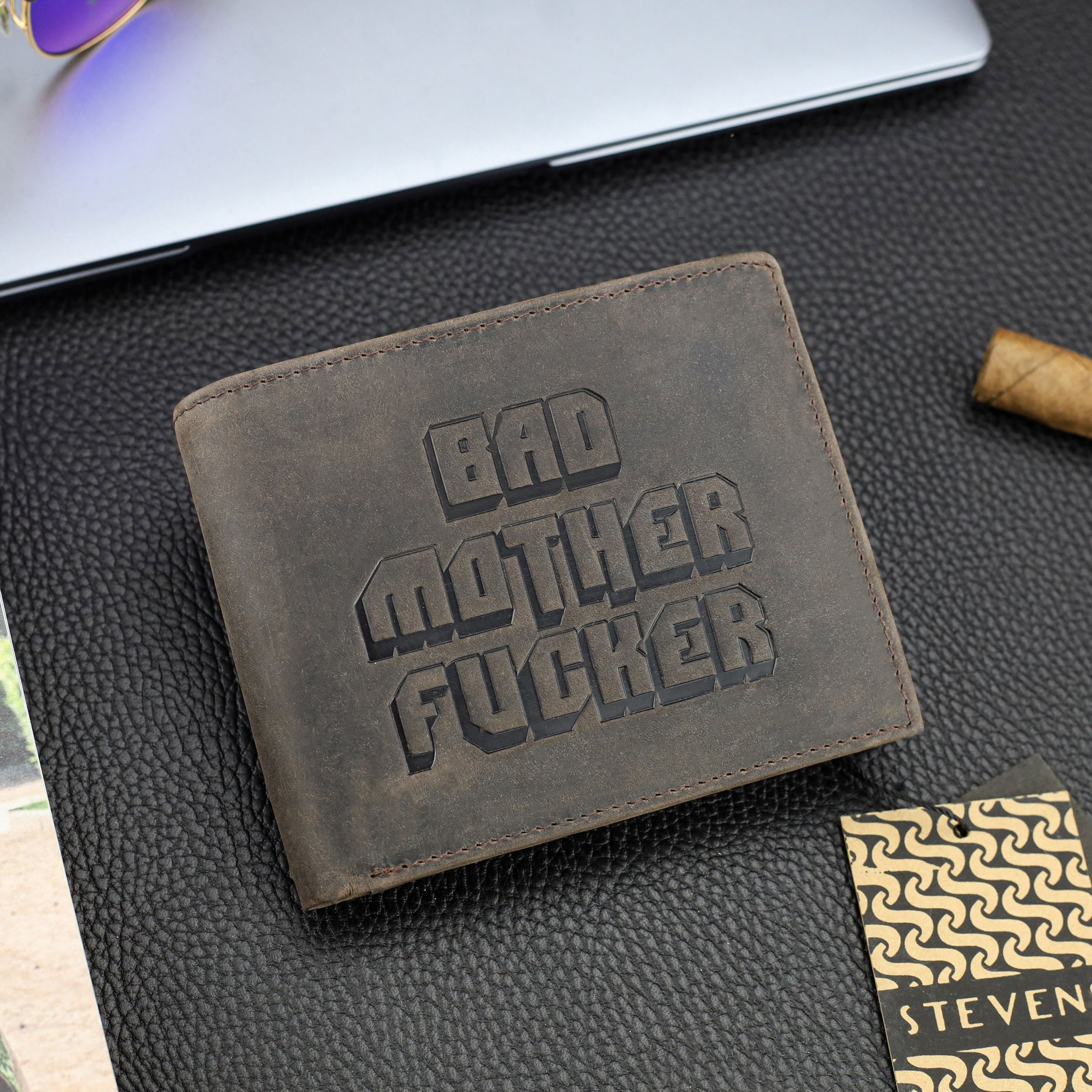Priekinėje dalyje – išskirtinis „Bad Mother“ PULP FICTION įkvėptas motyvas. Tai puiki dovana kino mėgėjui ar vyrui, kuris vertina šiek tiek išskirtinį, bet kartu praktišką aksesuarą.