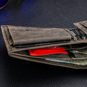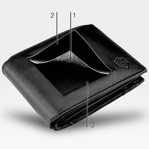 Piniginėje integruota RFID Secure technologija. Tai specialus sluoksnis tarp odos ir pamušalo, kuris blokuoja bekontakčių kortelių nuskaitymą. Taip apsaugomos jūsų kortelės nuo neteisėto duomenų nuskaitymo.