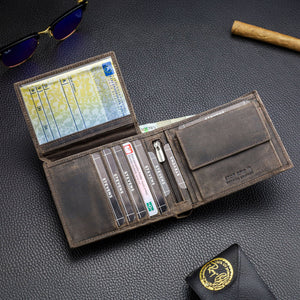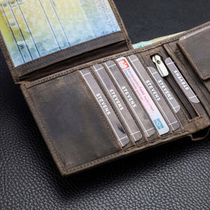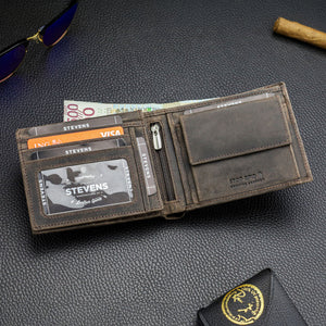 Vyriška piniginė STEVENS® iš natūralios odos, RFID, ruda, horizontali