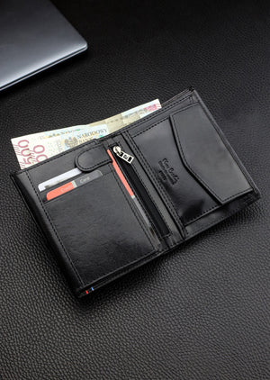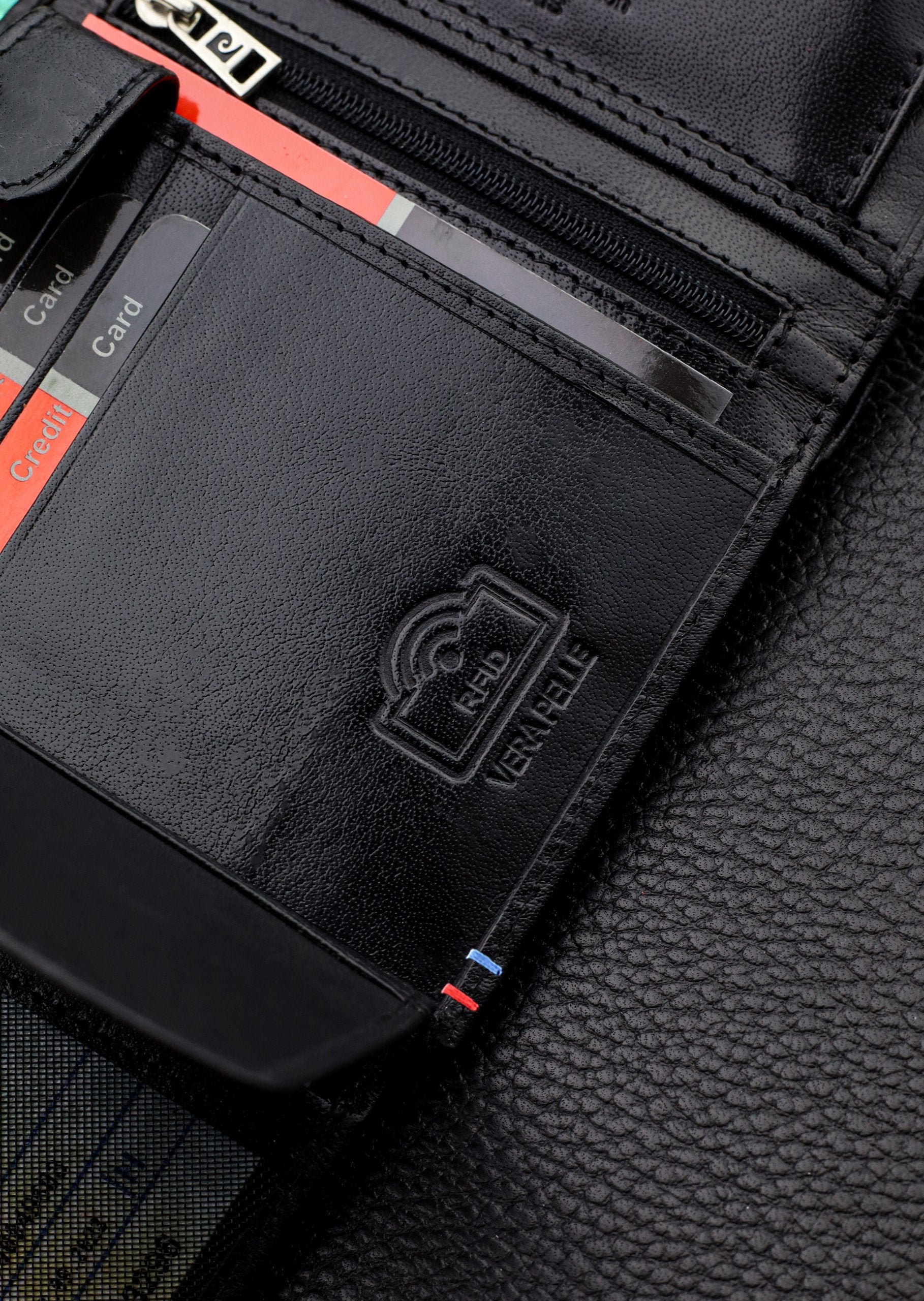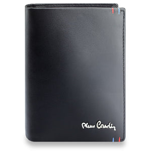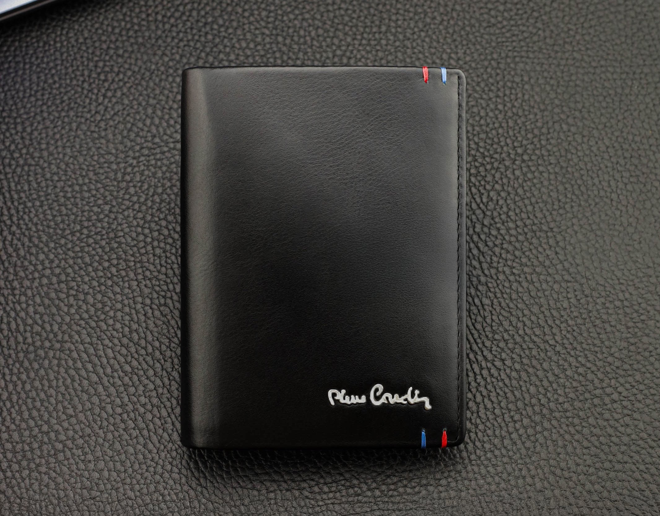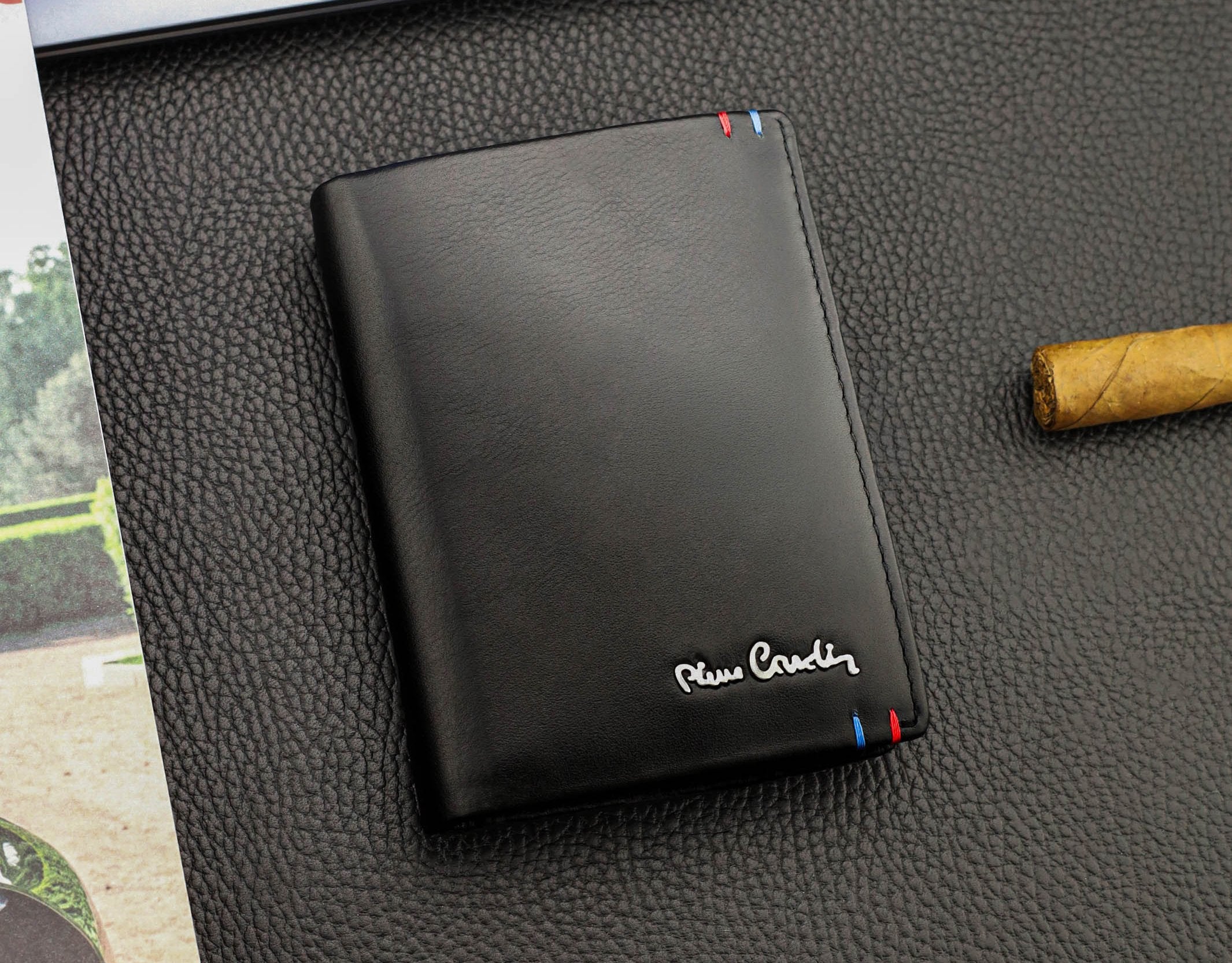 PIERRE CARDIN • Vyriška odinė piniginė Q3 • Juoda • Vertikali • RFID • Didesnė talpa • Be išorinio užsegimo