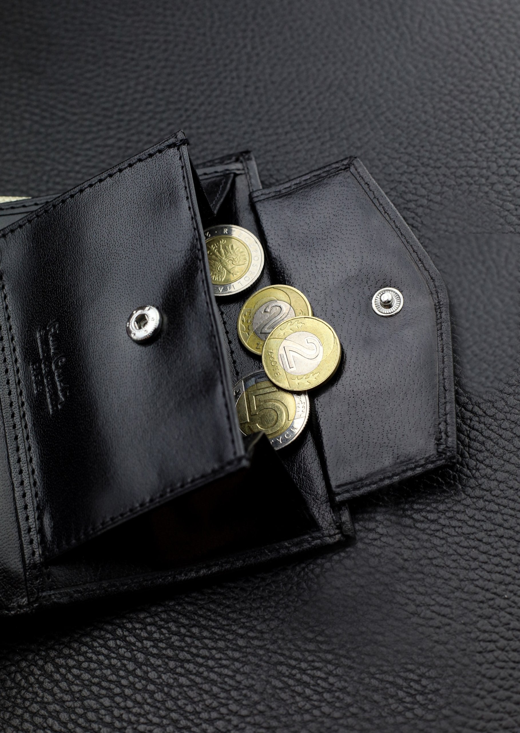Du erdvūs skyriai patogiai talpina visus PLN ir EUR nominalus – kasdieniam naudojimui.