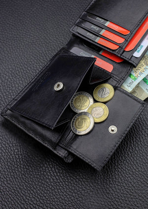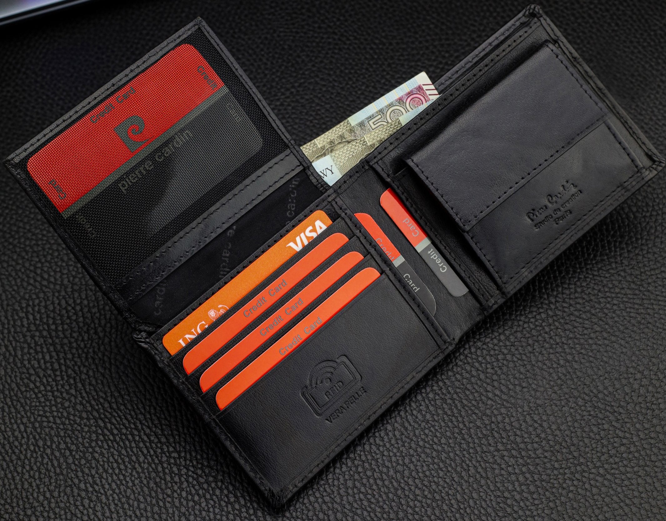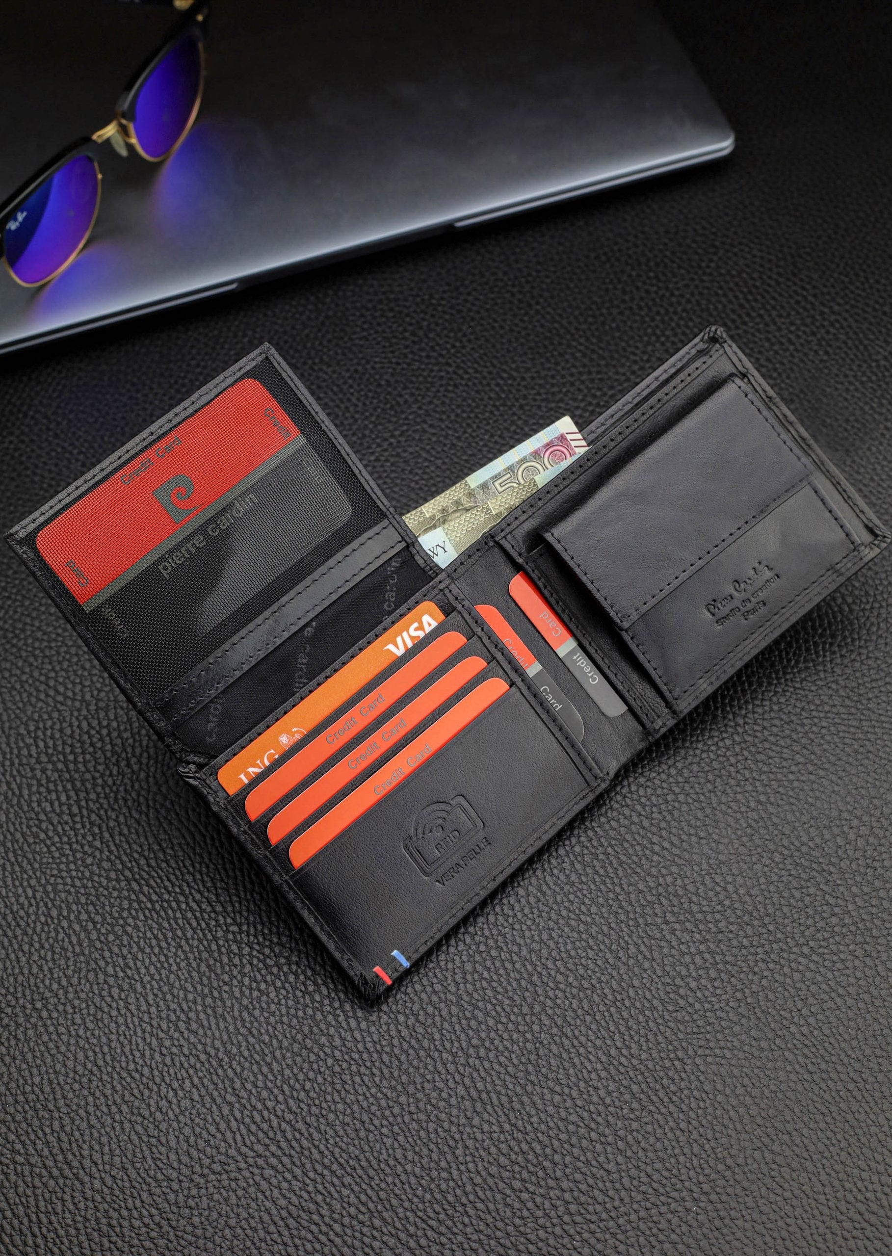 PIERRE CARDIN • Vyriška odinė piniginė Q1 • Juoda • Vertikali • RFID • Dydis: vidutinė