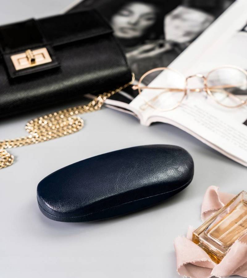 Dėklo paviršius padengtas blizgia eko oda, suteikiančia elegantišką išvaizdą. Vidus išklotas patvaria apsaugine medžiaga, kuri saugo akinius nuo subraižymo.