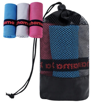 Greitai džiūstantys rankšluosčiai 3 vnt - dideli 50x100 cm su užvalkalu