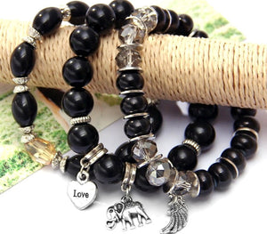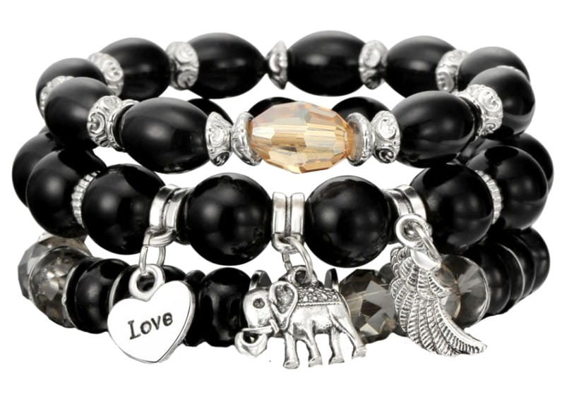 Pagrindinė priežastis, kodėl verta užsisakyti šį apyrankių rinkinį, yra jų neįprastas, akį traukiantis dizainas. Madingi karoliukai papildyti stilingais pakabukais su sparnu, simbolizuojančiu laisvę, laimę nešančiu drambliu ir širdies formos pakabuku su užrašu „Love“.