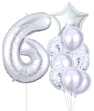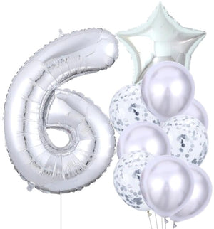 Rinkinį sudaro 10 įvairių dydžių ir formų balionų. Į rinkinį įeina tiek akį traukiantis didelis šešto skaičiaus formos folijos balionas, žvaigždės formos gaminys, tiek aštuoni klasikiniai latekso balionai. Kai kurie gaminiai yra permatomi ir pripildyti smulkiais sidabro spalvos konfeti.