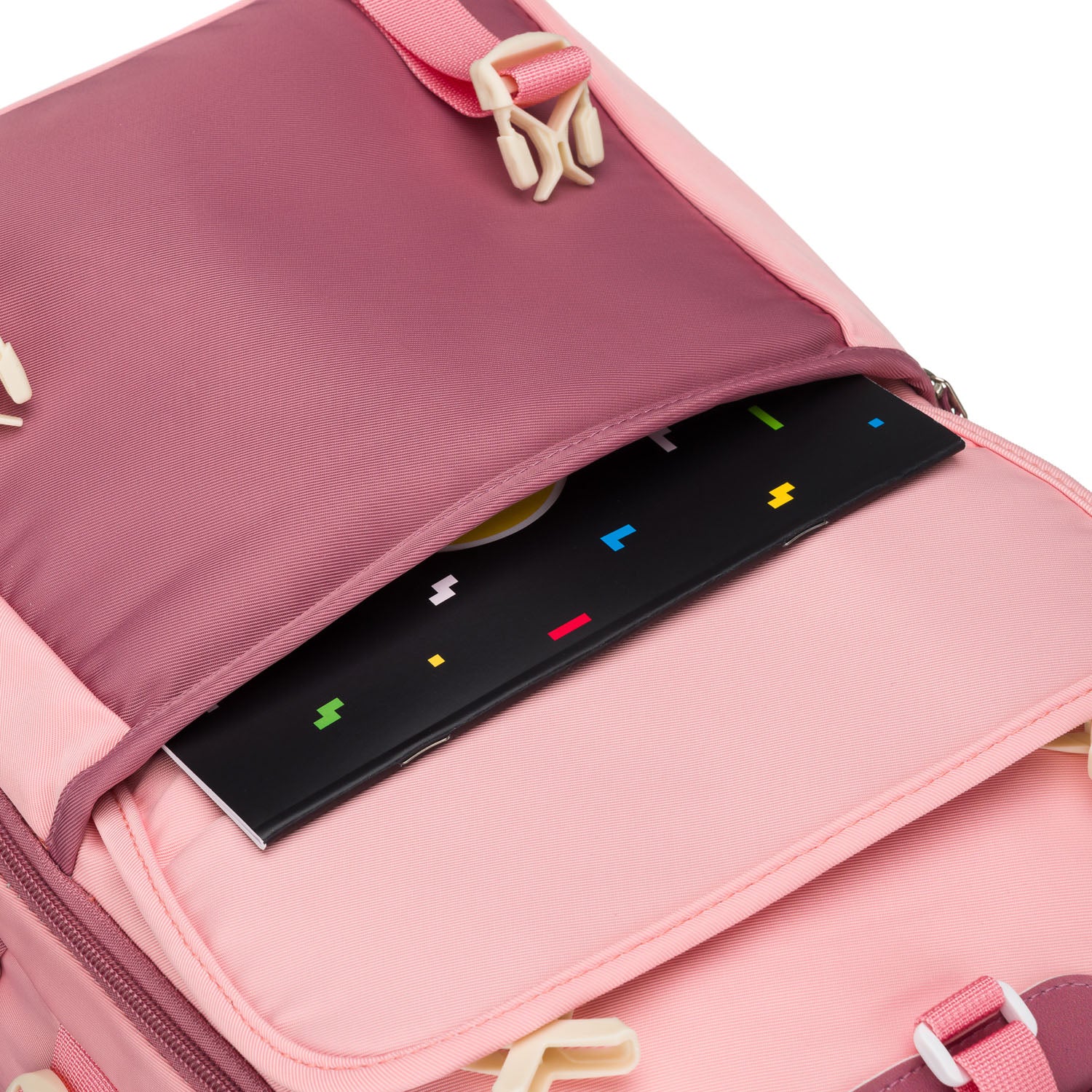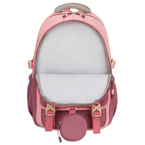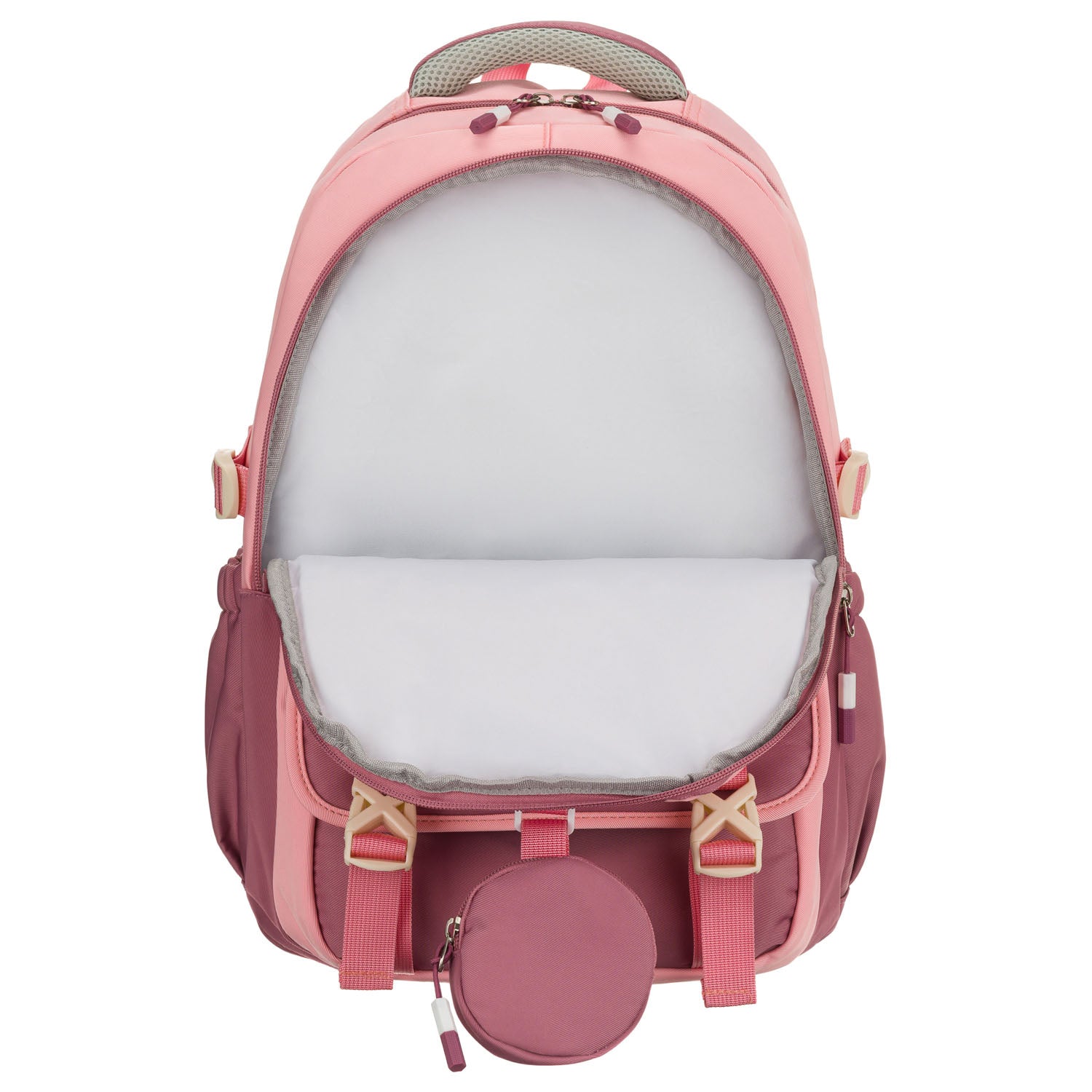 Peterson rožinis didelis poliesterio kuprinė su dviem skyriais ir penkiomis kišenėmis, puikiai tinka kasdieniam naudojimui.