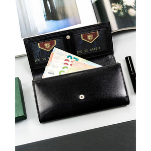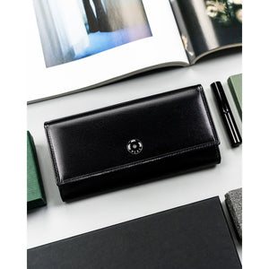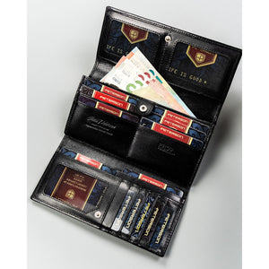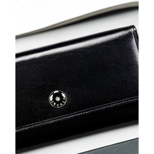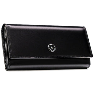Didelė moteriška odinė „Peterson“ piniginė su atvartu ir spaude, juoda ST82