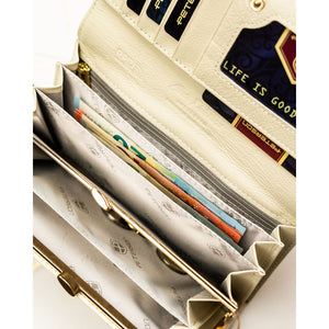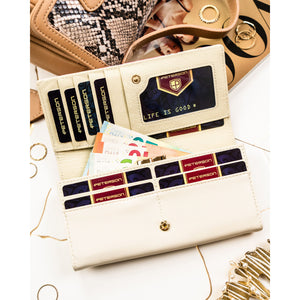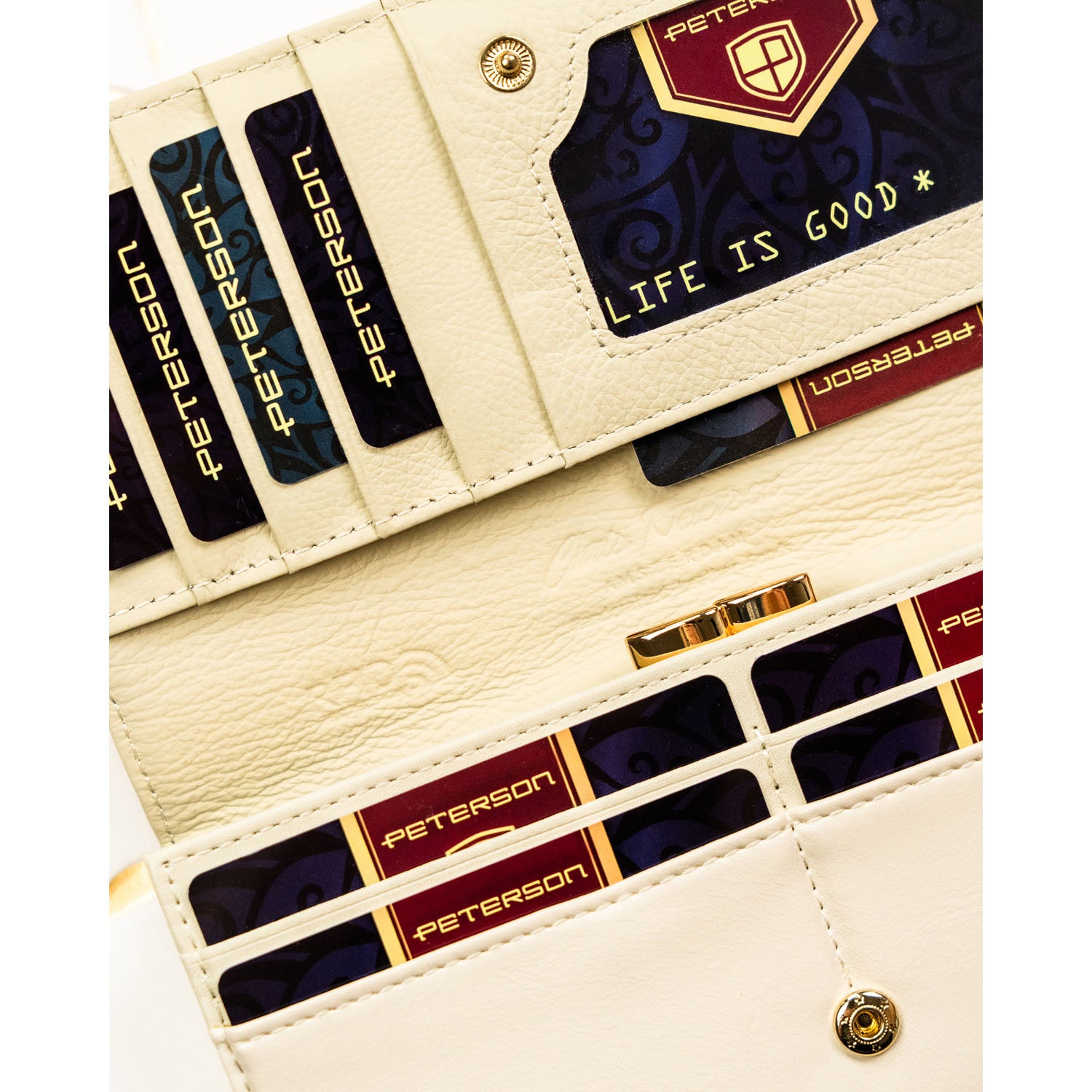 Peterson moteriška piniginė iš dirbtinės odos, smėlios spalvos, su užsegimu.