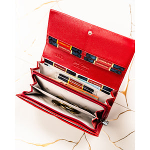 Ši didelė raudona Peterson piniginė tinka moterims, ieškančioms talpaus, funkcionalaus ir stilingo aksesuaro kasdieniam naudojimui.