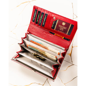 Didelė piniginė moterims Peterson, raudona G23 – praktiškas ir stilingas pasirinkimas ieškančioms talpios, saugios ir ilgaamžės odinės piniginės.