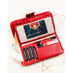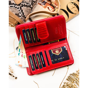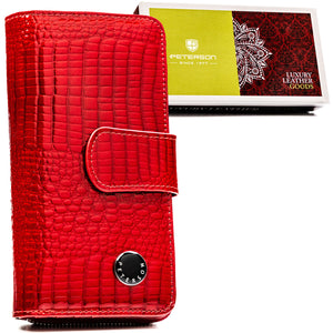 Didelė piniginė moterims Peterson, raudona G27 – praktiškas ir stilingas pasirinkimas, derinantis talpumą, saugumą ir modernų dizainą.