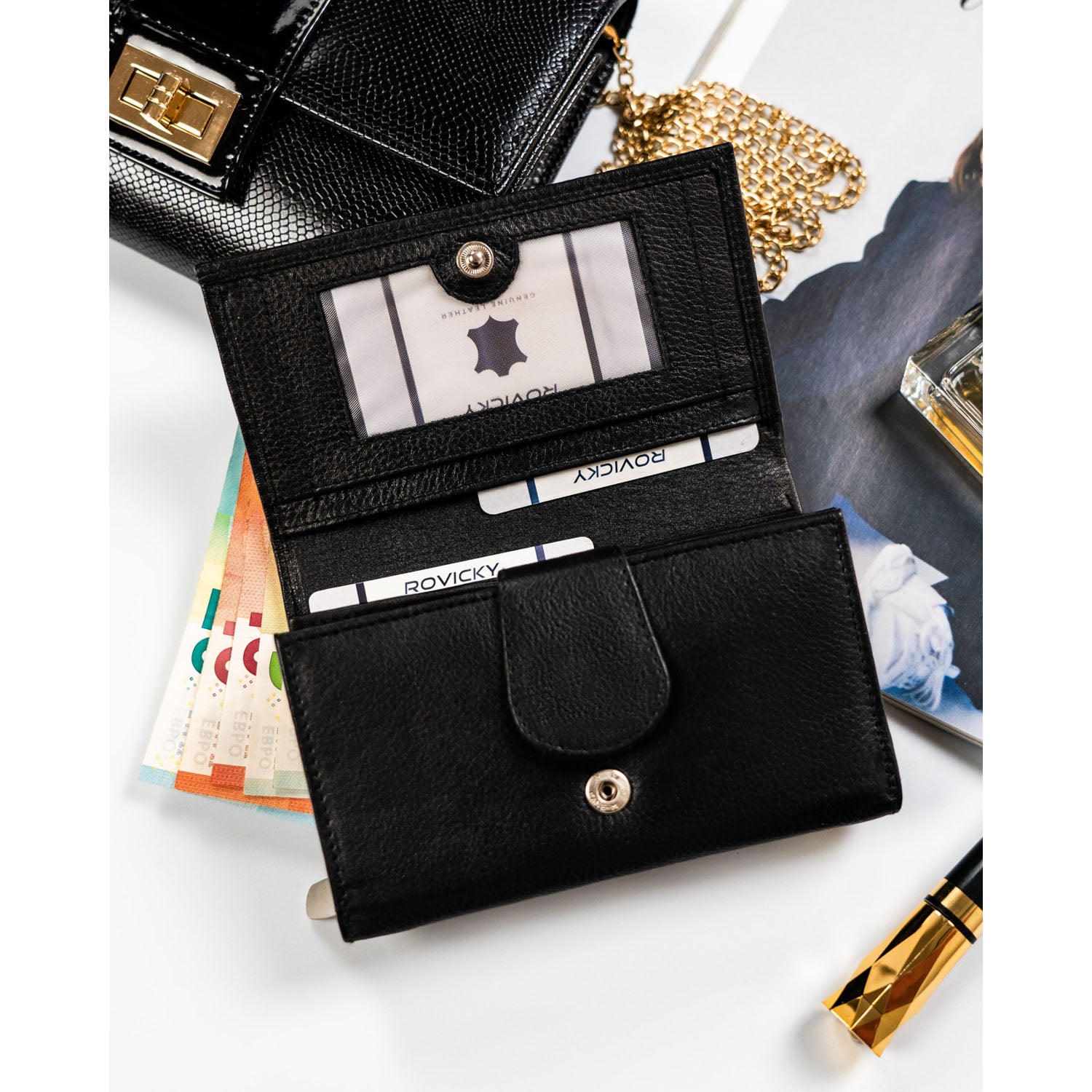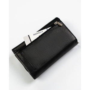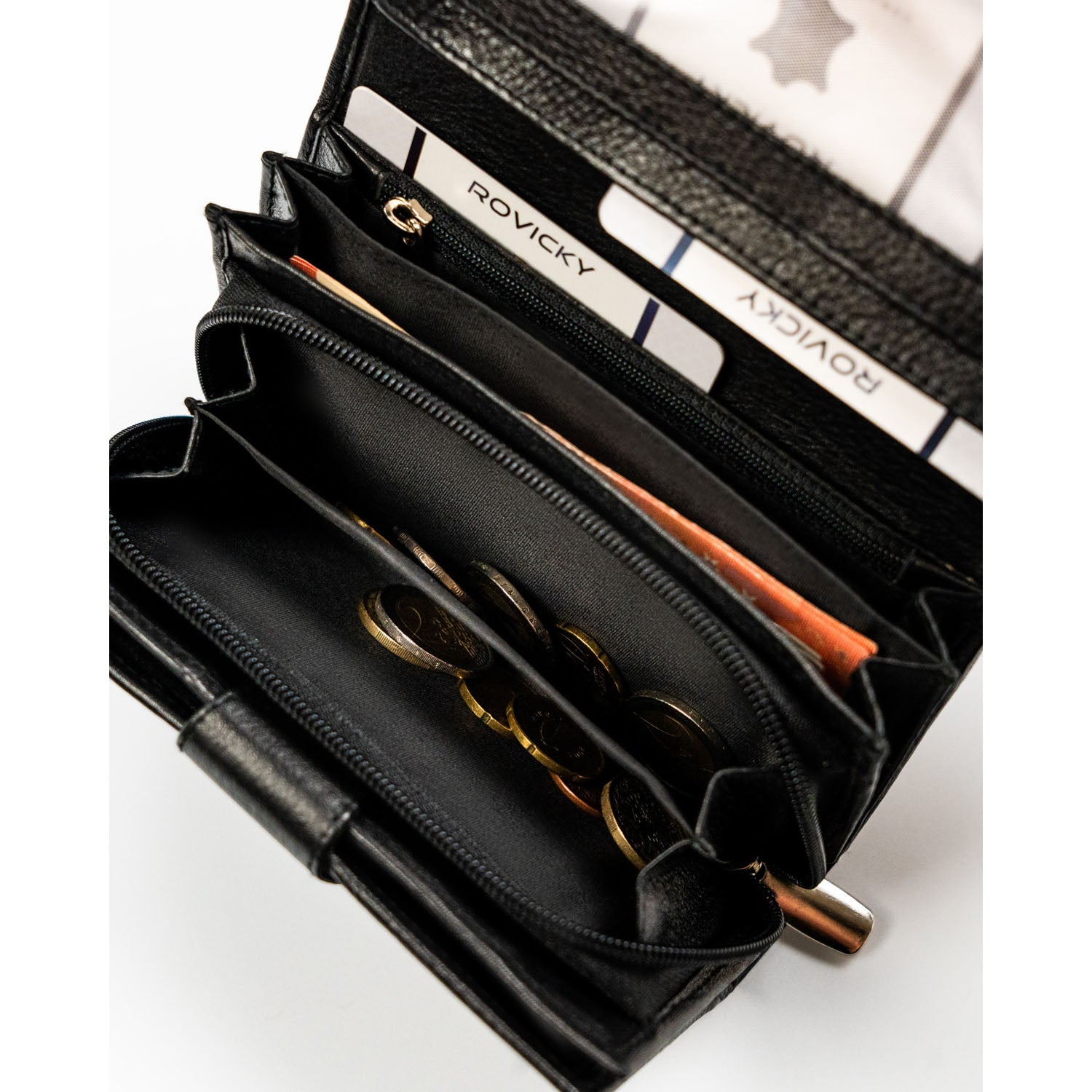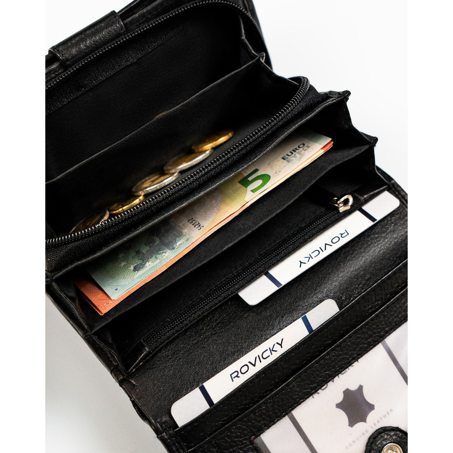 Rovicky moteriška rankinė iš natūralios odos, juodos spalvos, su užtrauktuku ir RFID apsauga.