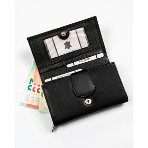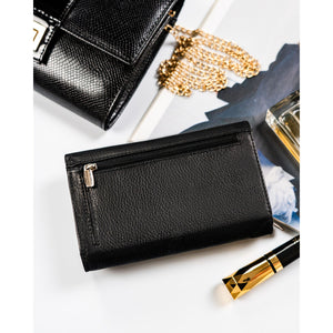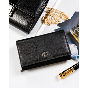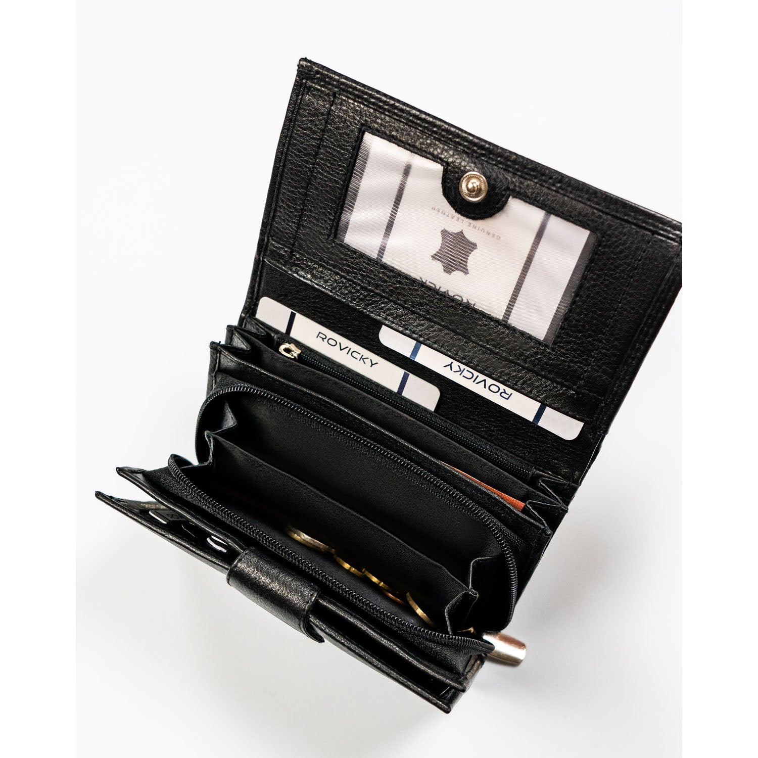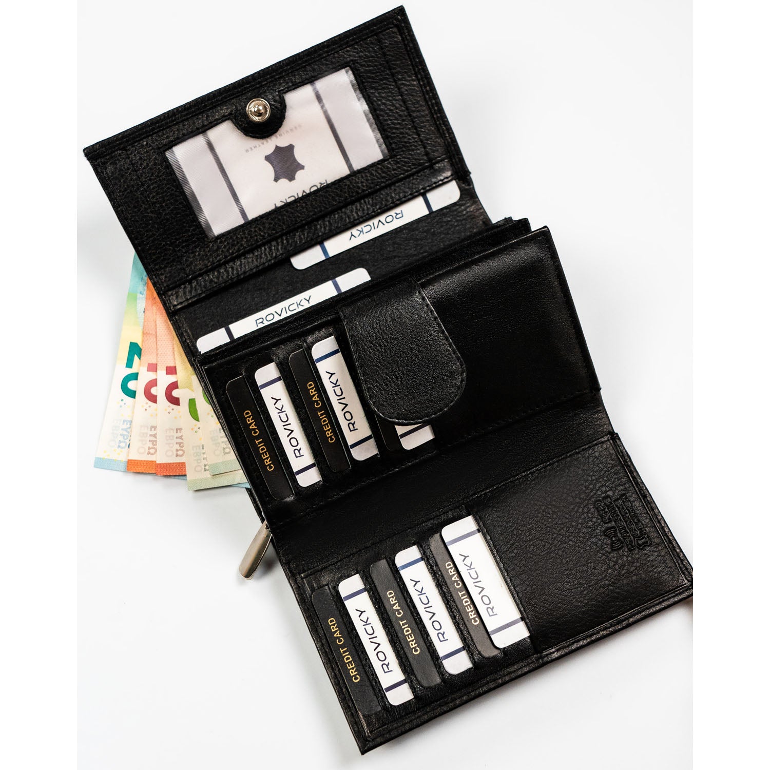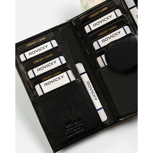 Rovicky moteriška rankinė iš natūralios odos, juodos spalvos, su užtrauktuku ir RFID apsauga.
