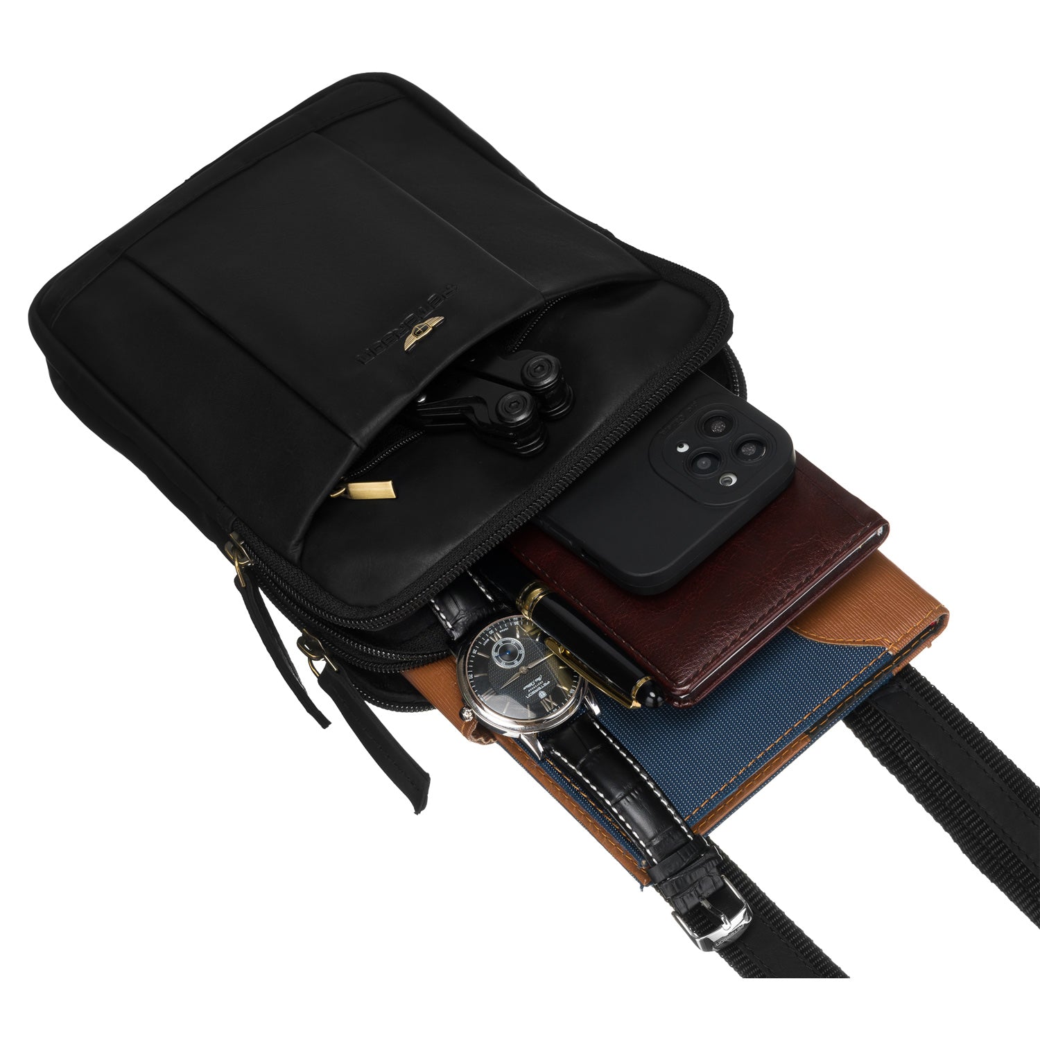 Peterson vyriška delninė iš dirbtinės odos, juodos spalvos, su dviem skyriais ir trimis kišenėmis.
