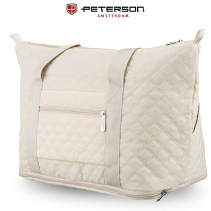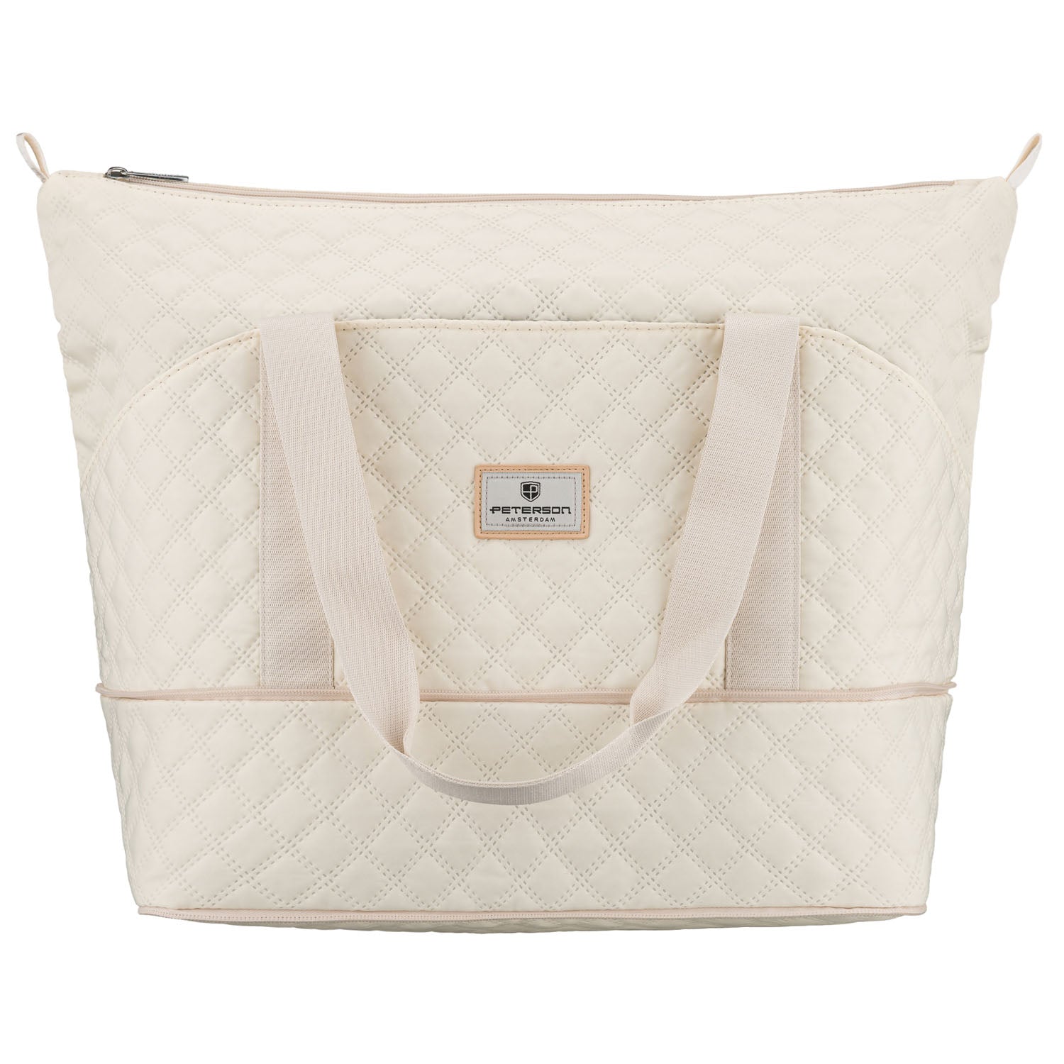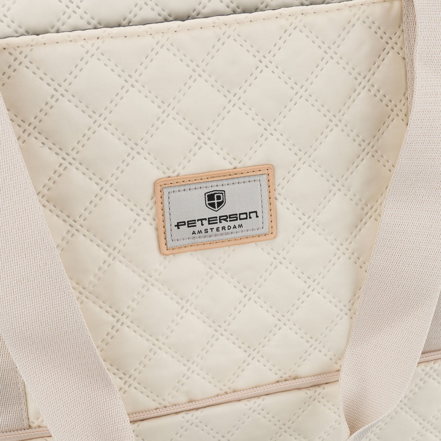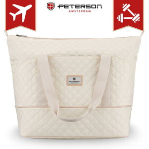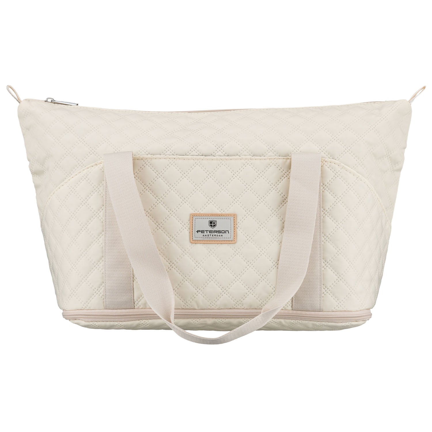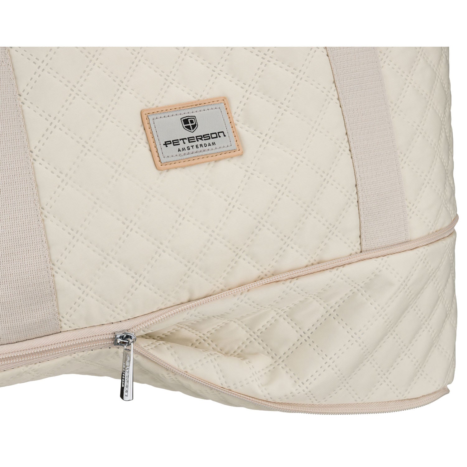 Didelė smėlio spalvos Peterson sportinė rankinė iš poliesterio – talpi kasdieniam naudojimui, tinkama moterims ir vyrams.