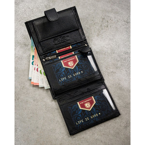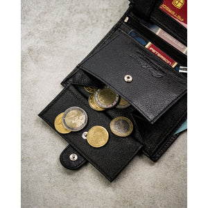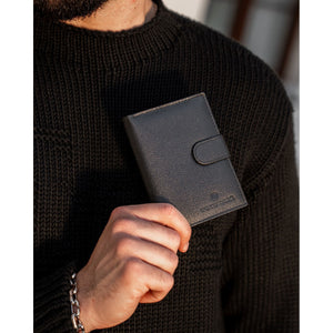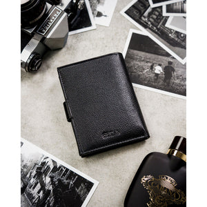 Piniginė pagaminta iš aukštos kokybės natūralios odos, pasižyminčios tvirtumu ir ilgalaikiu estetiškumu. Integruota RFID apsauga saugo bekontaktes korteles nuo nepageidaujamo nuskaitymo.