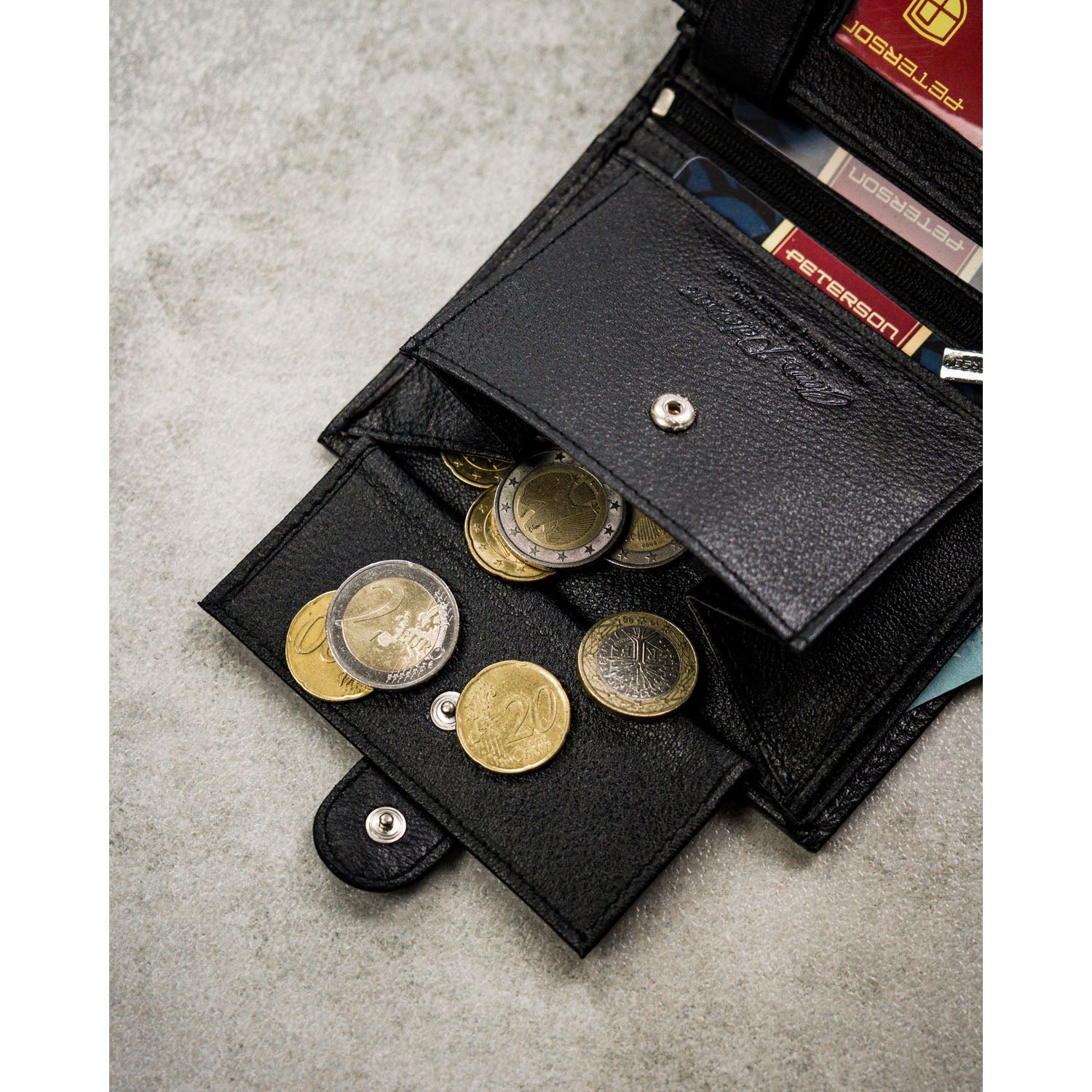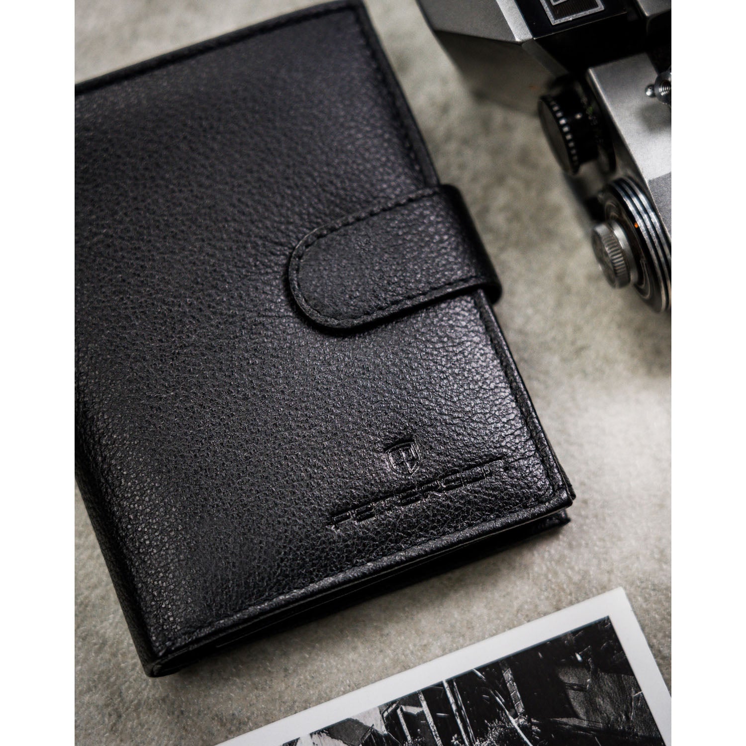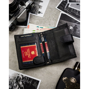 Dovanų rinkinys vyrams: vertikali natūralios odos piniginė su RFID apsauga + juodas eko odos diržas Peterson