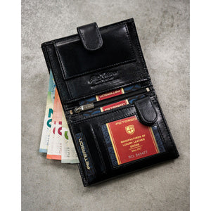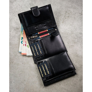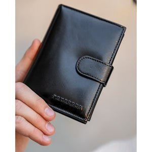 Piniginė pagaminta iš aukštos kokybės natūralios odos, kuri išsiskiria ilgaamžiškumu ir elegantišku blizgesiu. Integruota RFID apsauga užtikrina mokėjimo kortelių saugumą, apsaugodama nuo bekontakčio nuskaitymo.