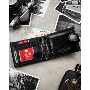 Piniginė pagaminta iš tikros natūralios odos, kuri pasižymi patvarumu, maloniu paviršiumi ir solidžia išvaizda. Integruota RFID apsauga saugo mokėjimo korteles nuo nepageidaujamo duomenų nuskaitymo.
