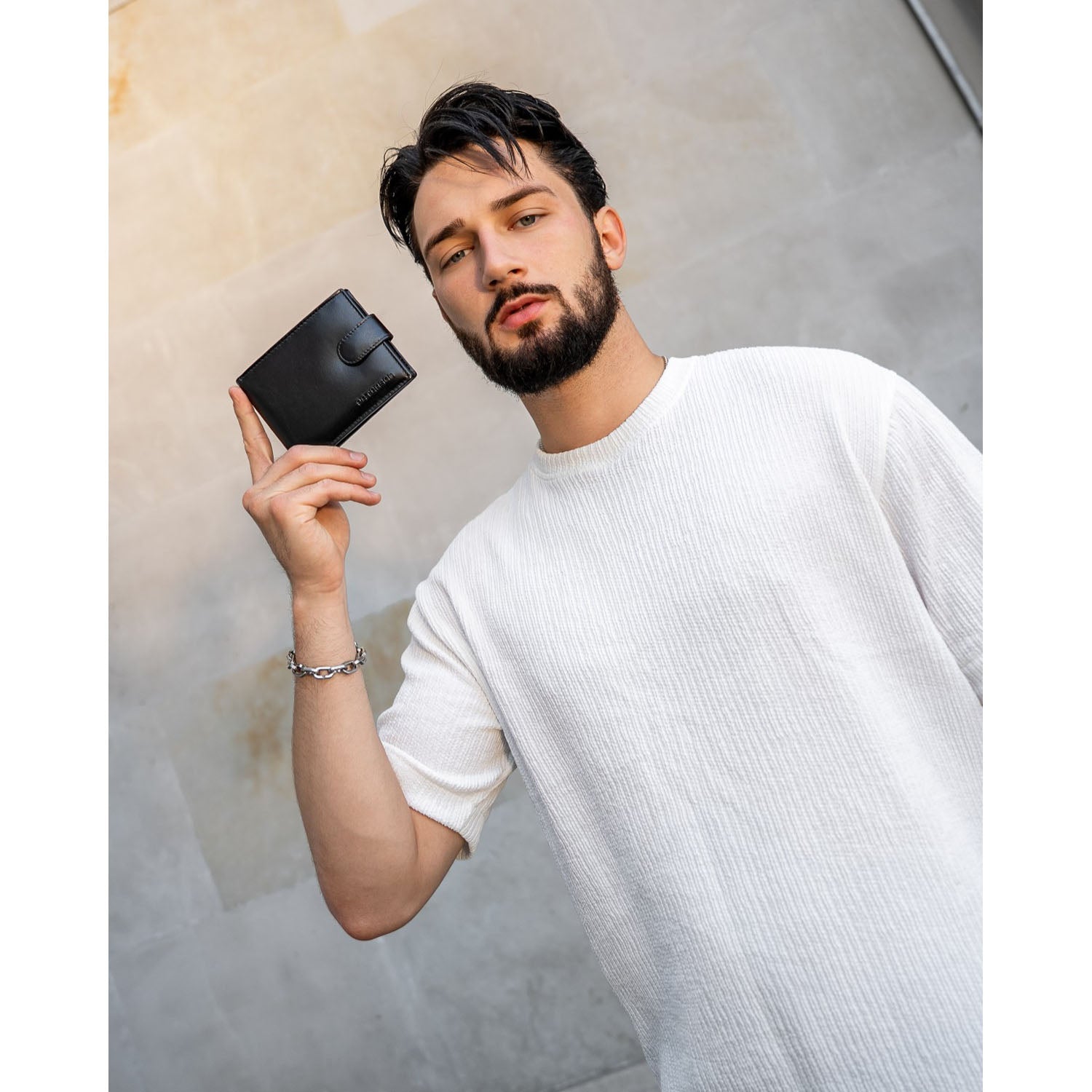 Kompaktiška, tačiau talpi piniginė leidžia patogiai laikyti korteles, dokumentus, grynuosius pinigus ir monetas. Tai universalus modelis, tinkantis įvairaus amžiaus ir stiliaus vyrams.