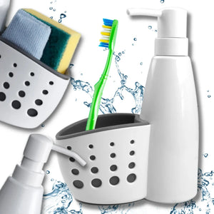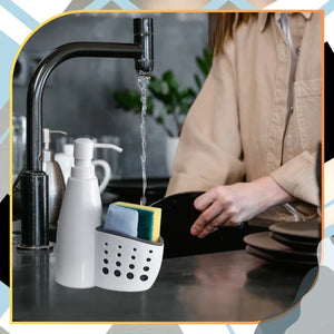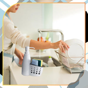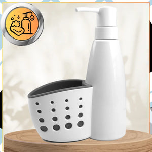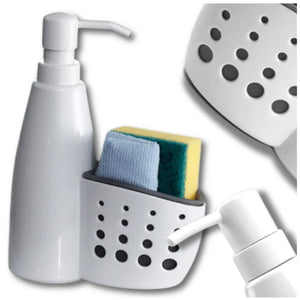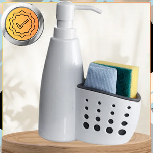✅ Prie dozatoriaus pritvirtinta talpyklė leidžia higieniškai laikyti kempinėles