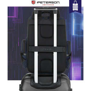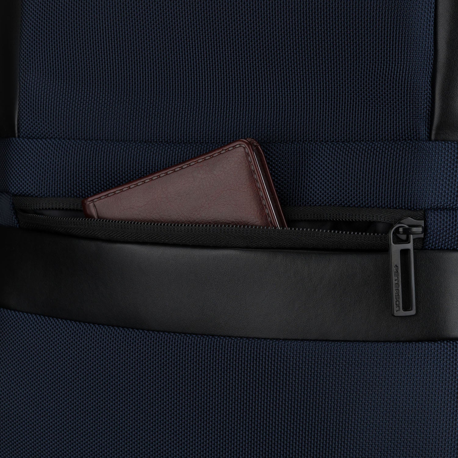 Tamsiai mėlyna Peterson kuprinė moterims – praktiška ir talpi miesto kuprinė, tinkanti kasdieniam naudojimui ir nešiojamam kompiuteriui iki 14". Pagaminta iš patvaraus poliesterio ir codura audinio, atsparaus intensyviam dėvėjimuisi.