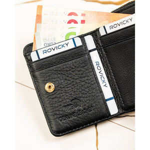 Maža moteriška natūralios odos piniginė su RFID apsauga, juoda – Rovicky ST80