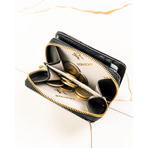 Maža moteriška piniginė iš natūralios odos, juoda, su RFID apsauga