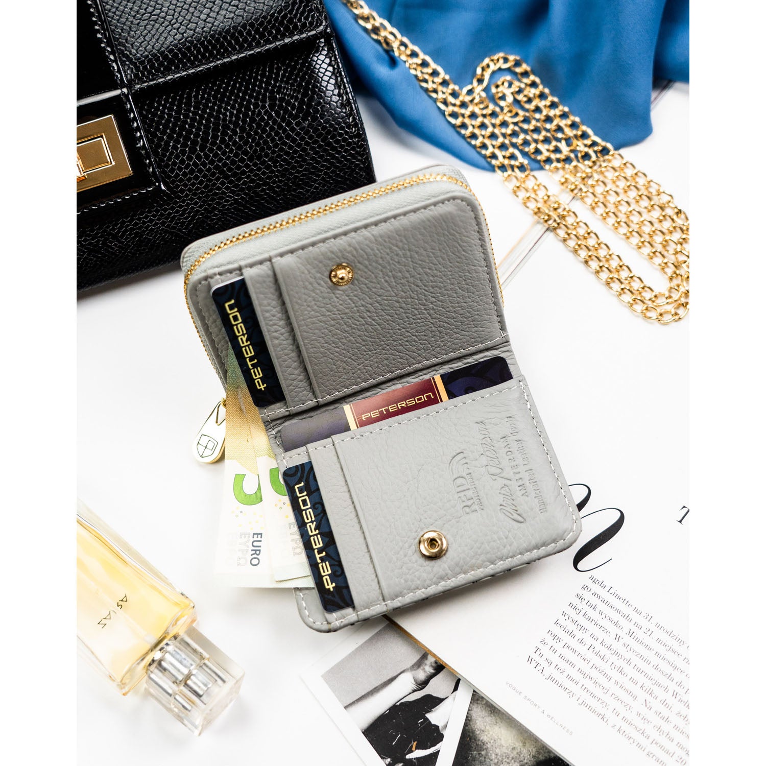 Peterson moteriška piniginė iš natūralios odos, juodos spalvos, su RFID apsauga.