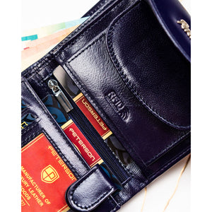 Peterson moteriška piniginė iš natūralios odos, Violetinės spalvos, su RFID apsauga.