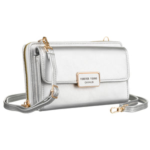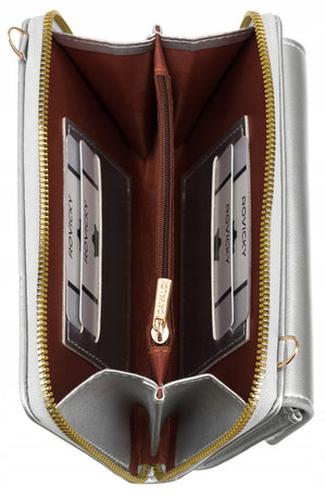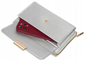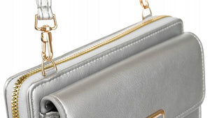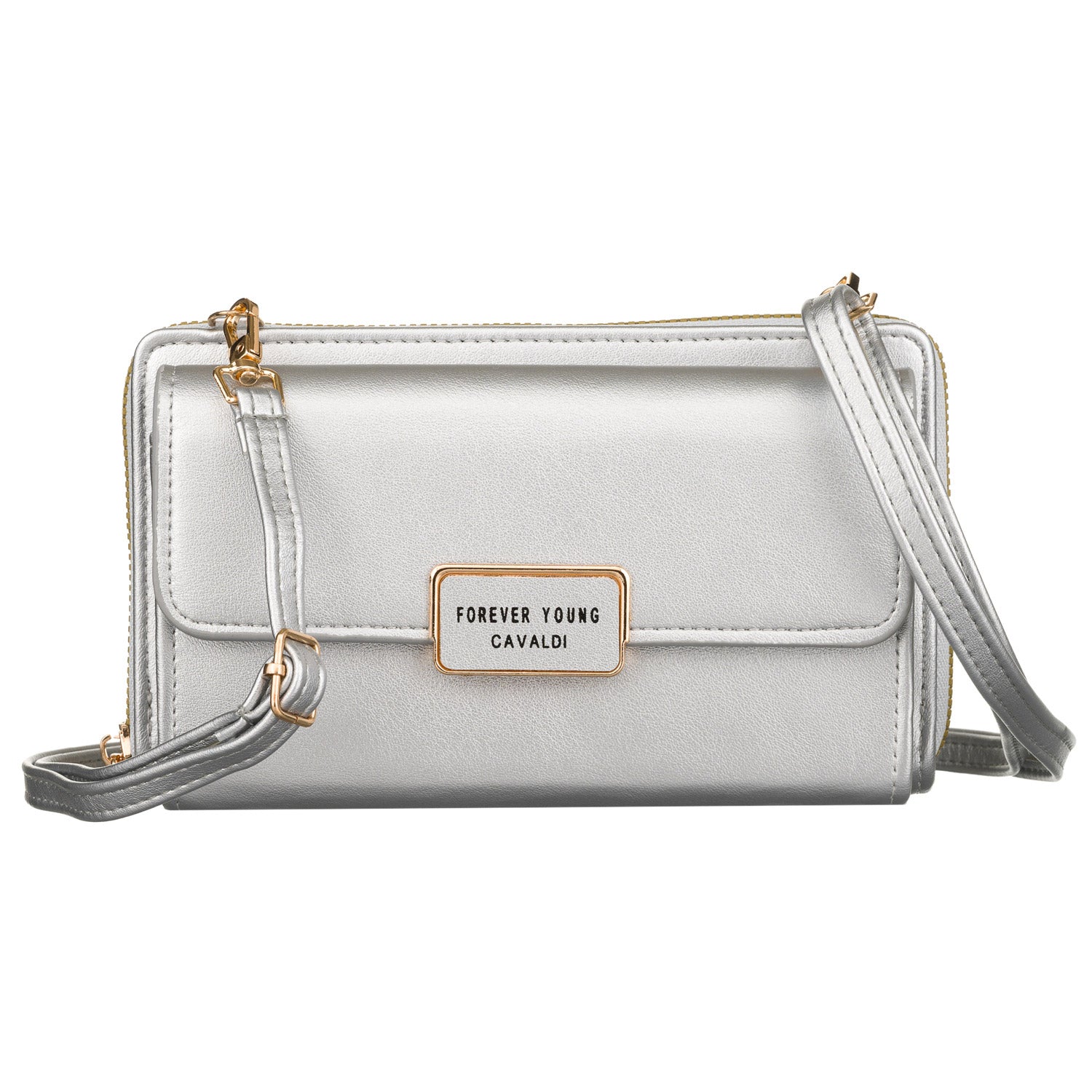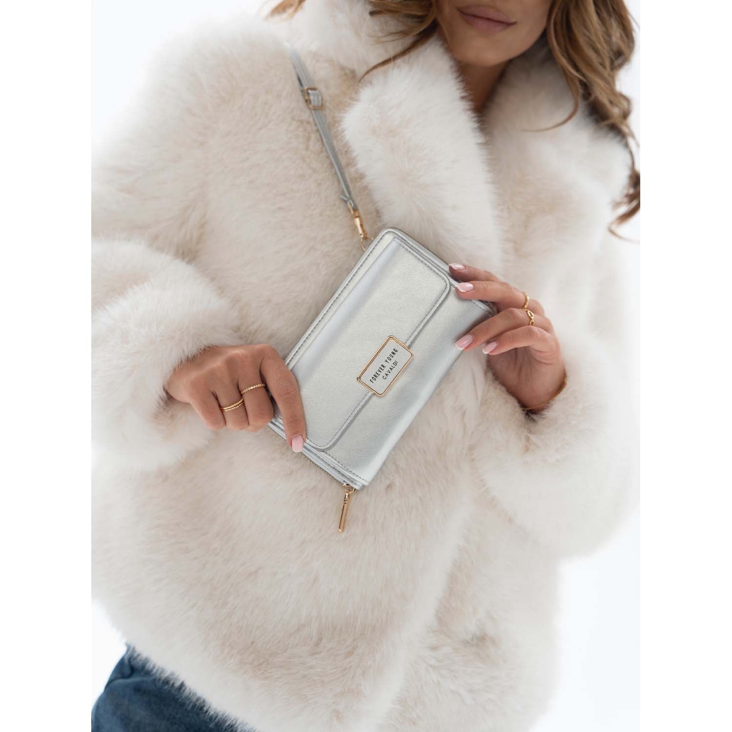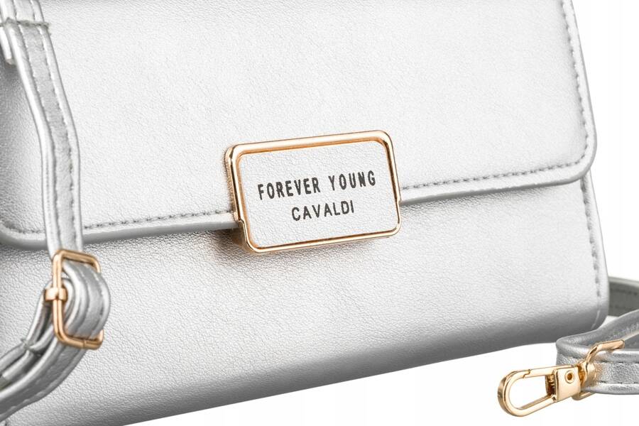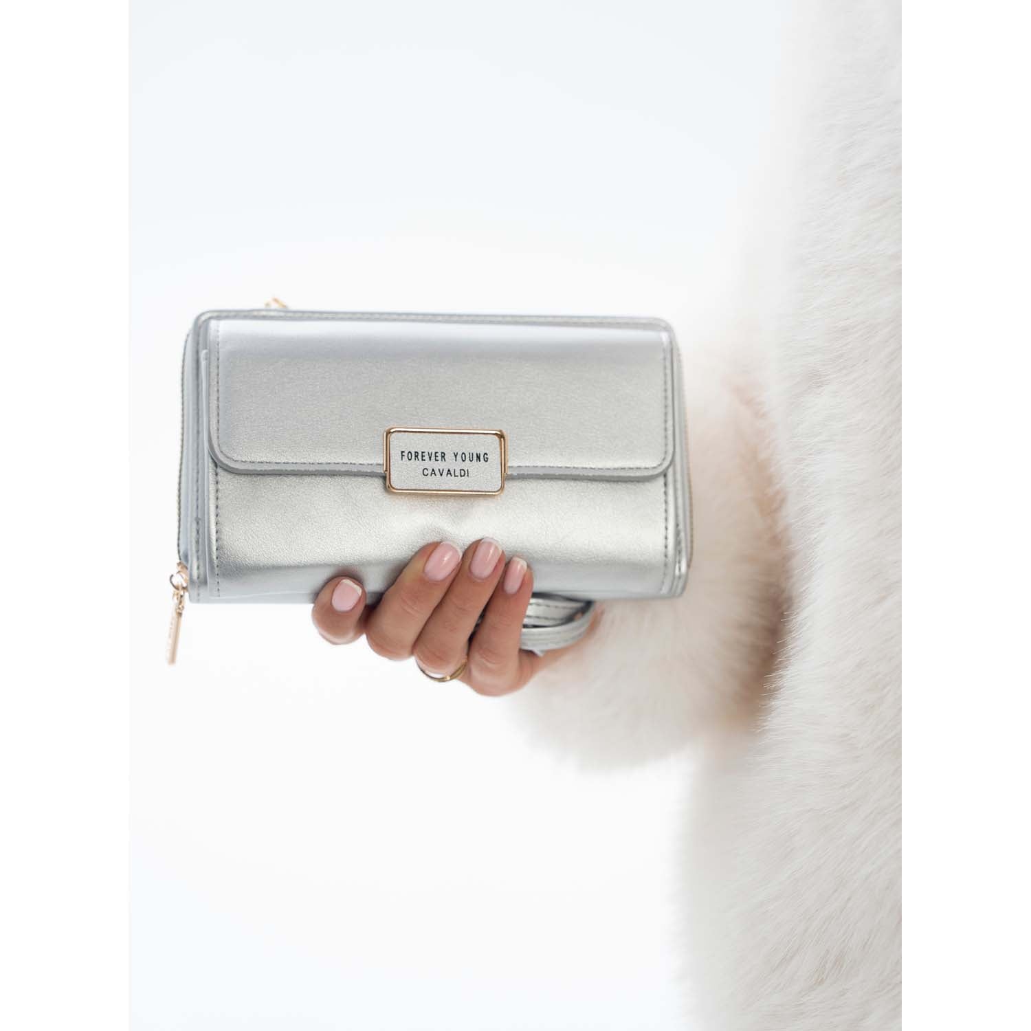 Didelis 4U CAVALDI sidabrinis moteriška rankinė iš ekologiškos odos su užtrauktuku.
