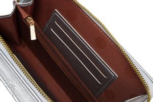 Didelis 4U CAVALDI moteriška rankinė iš sidabrinės ekologiškos odos, puikiai tinkantis kasdieniam naudojimui.
