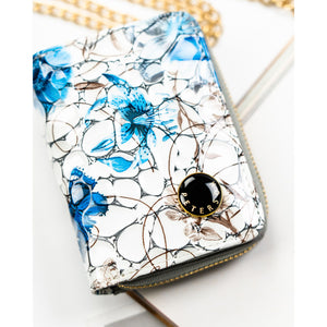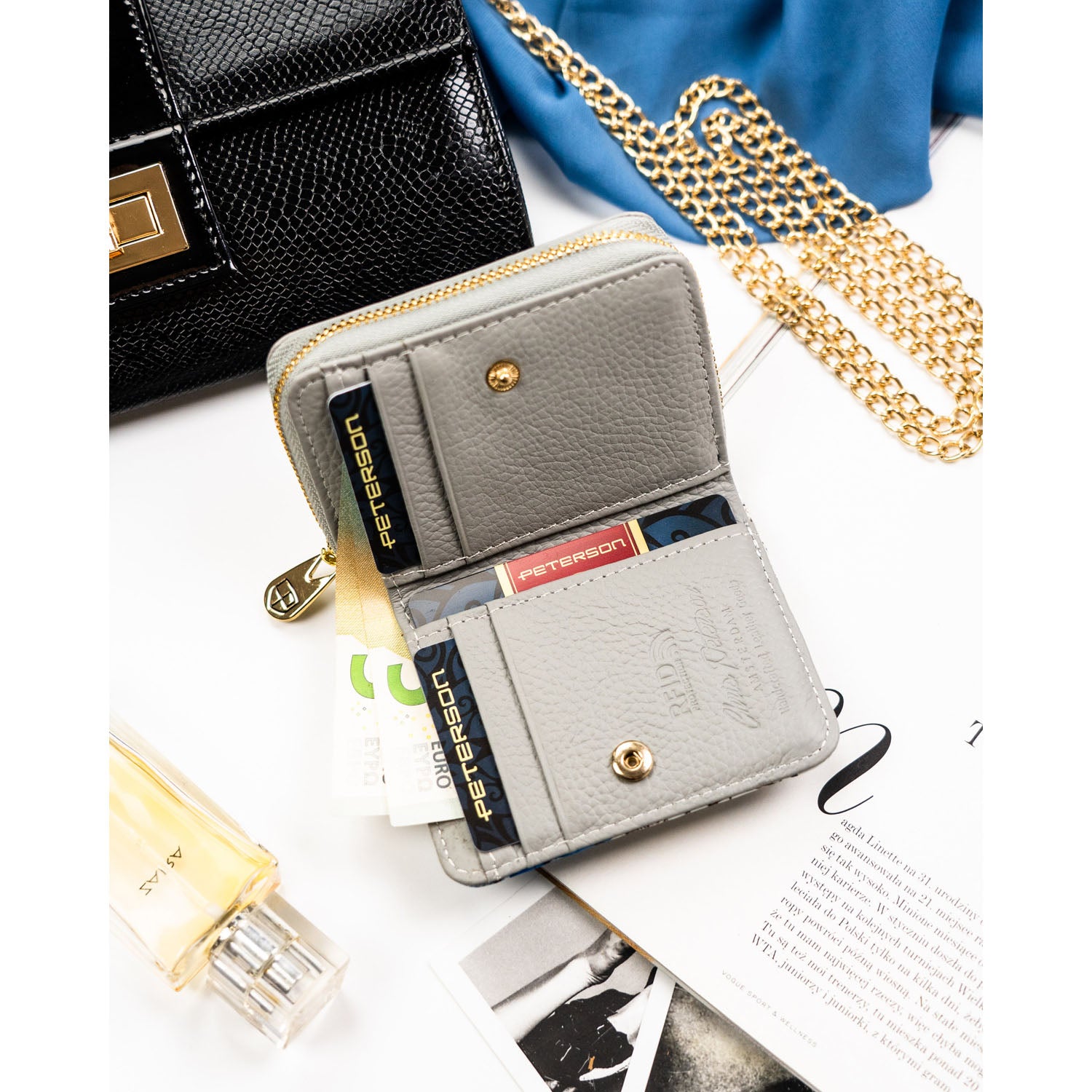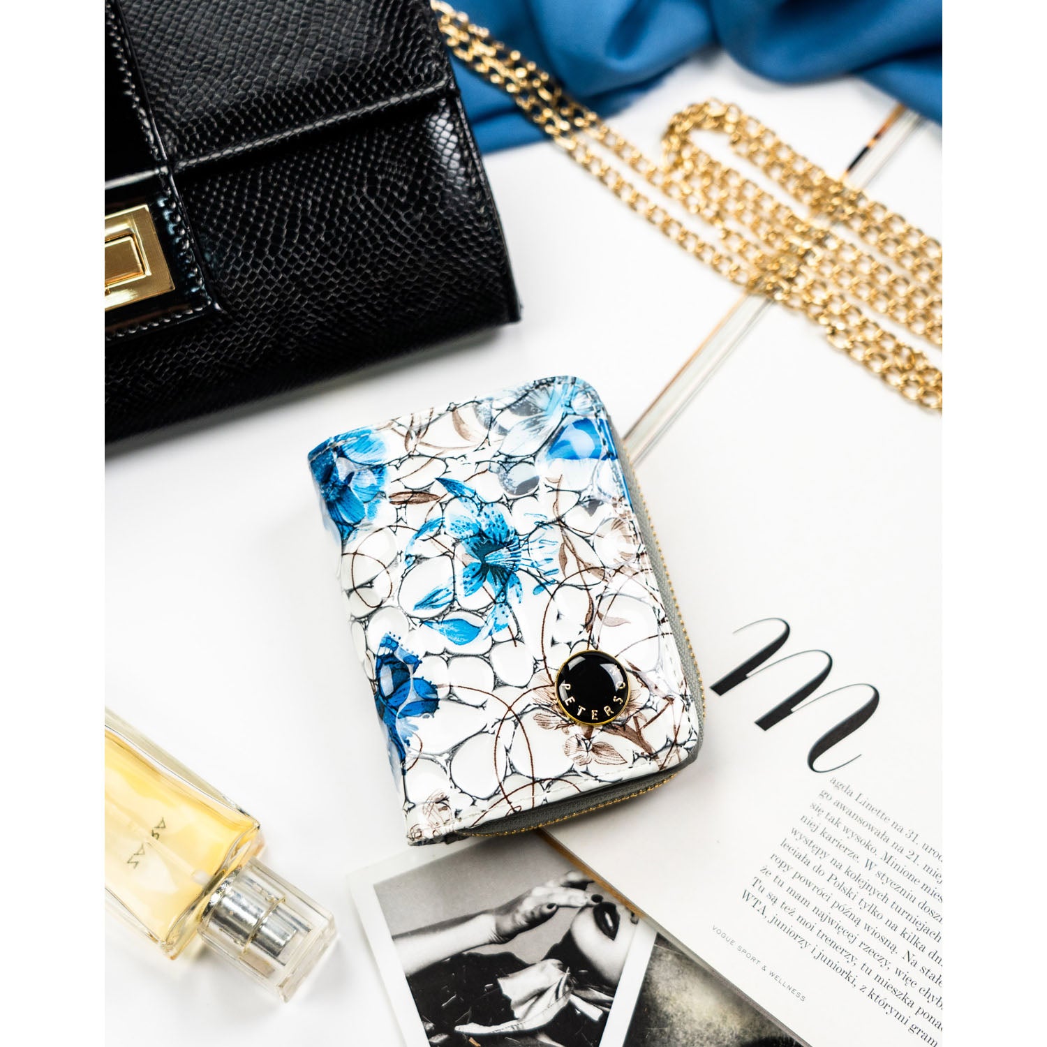 Peterson moteriška piniginė iš natūralios odos, mėlynos spalvos, su užsegimu ir užtrauktuku.