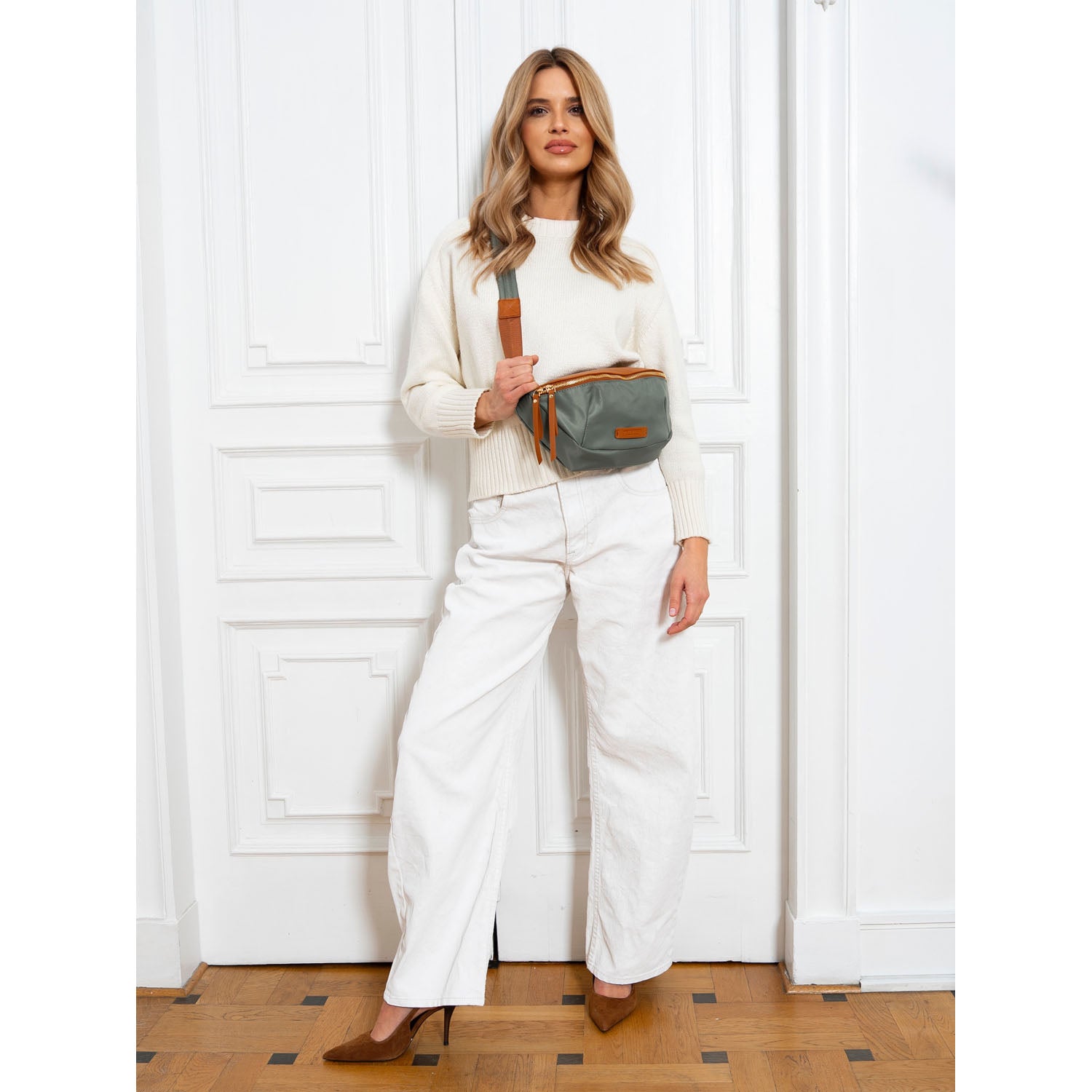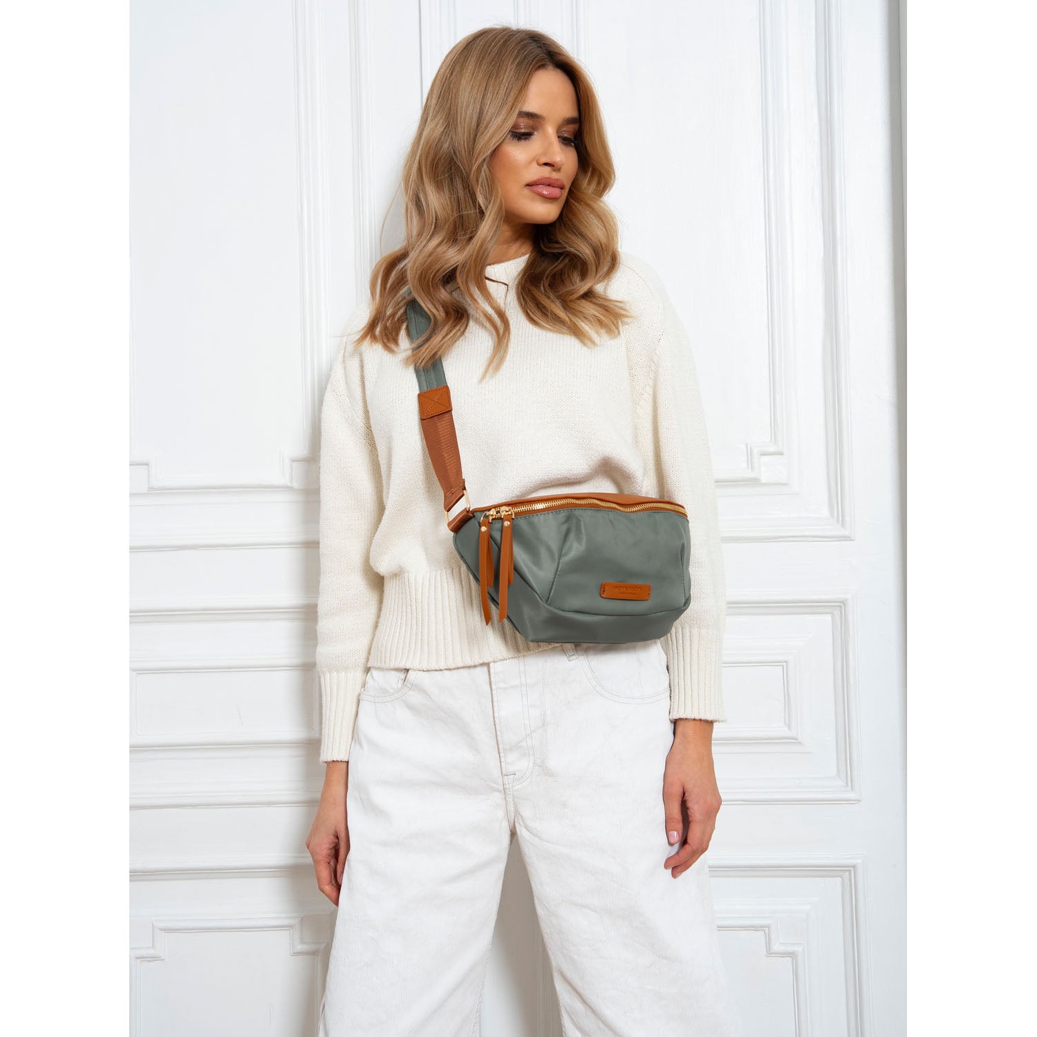 Moteriška rankinė, žalia-ruda, nailonas ir dirbtinė oda N396
