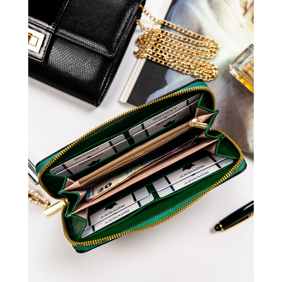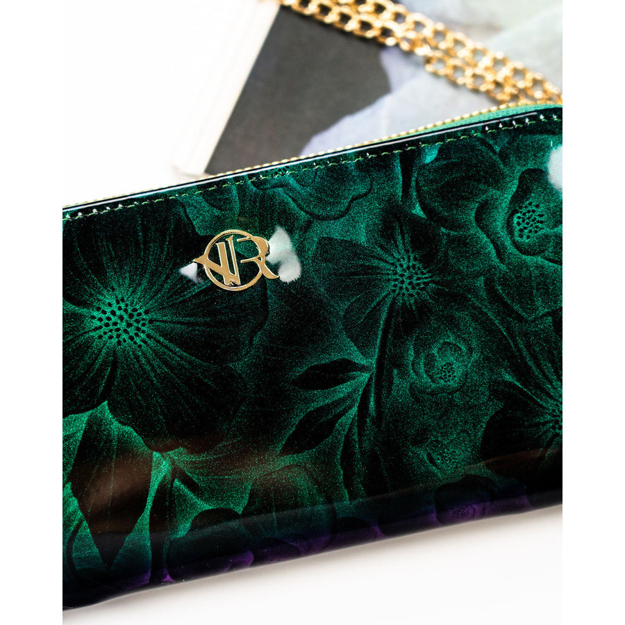 Moteriška „Rovicky“ piniginė–dėklas iš ekologiškos odos, žalia, su gėlių raštu ST99